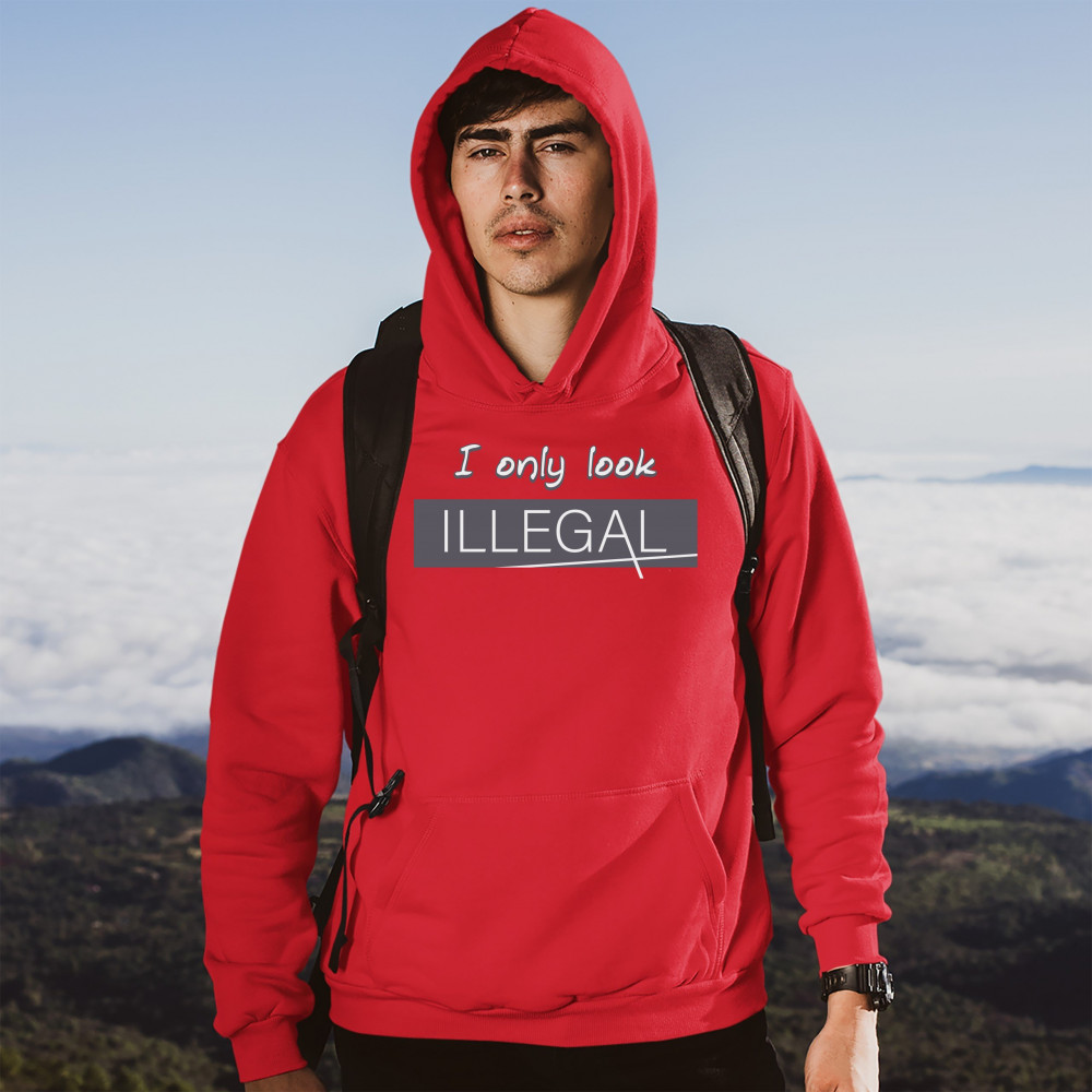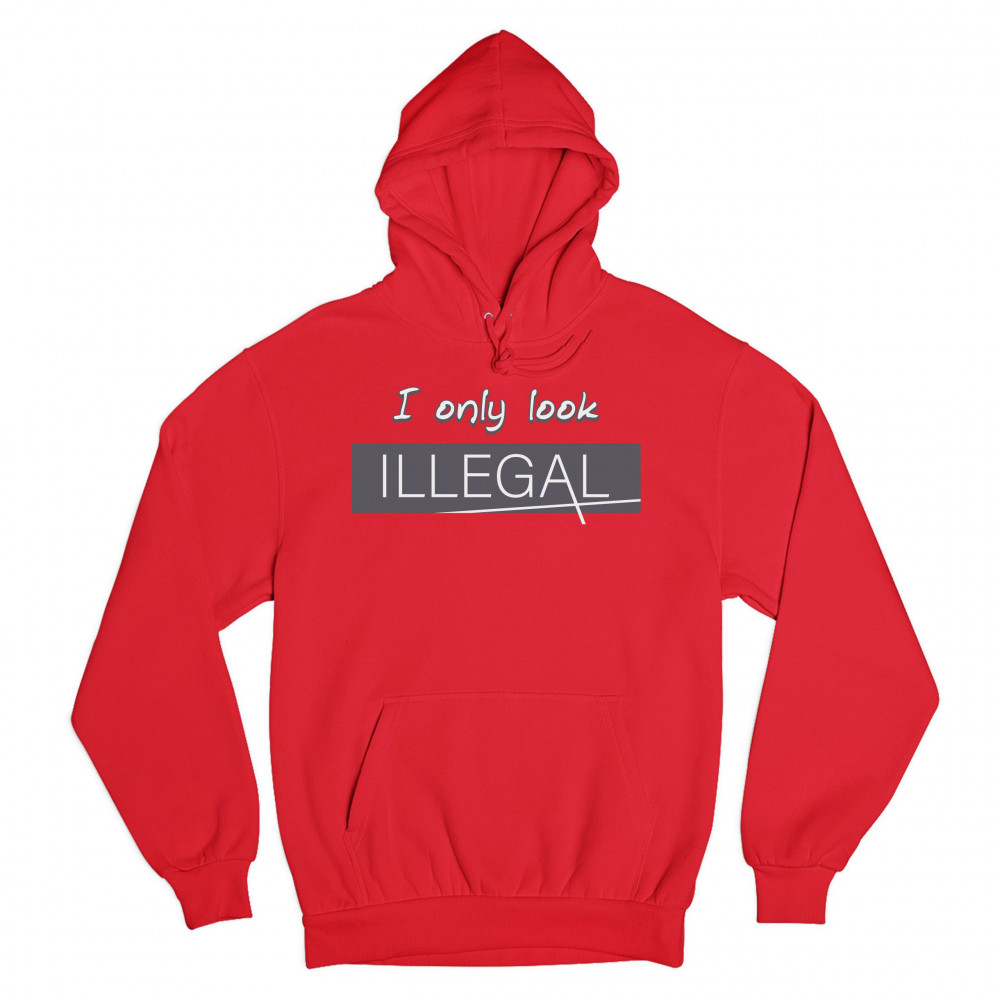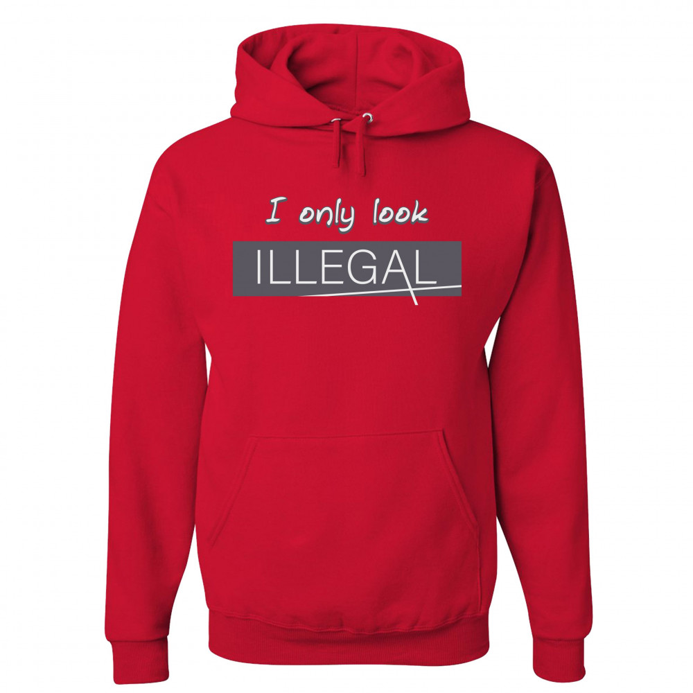 I ONLY LOOK ILLEGAL sweatshirt stop racism pro immigration funny hoodie red