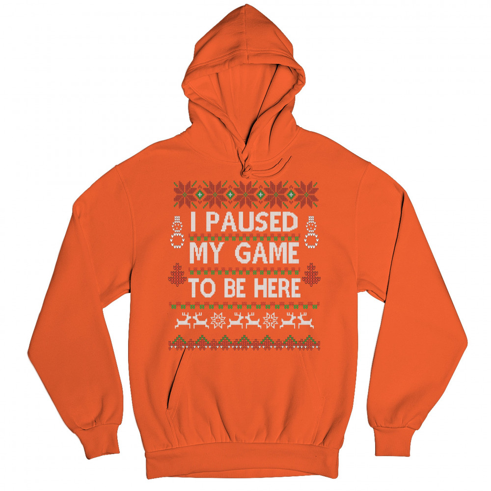 I PAUSED MY GAME TO BE HERE UGLY SWEATER THEME sweatshirt christmas hoodie orange