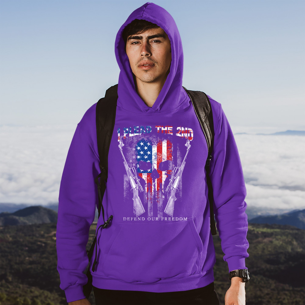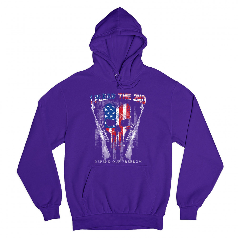 I PLEAD THE 2ND DEFEND OUR FREEDOM sweatshirt american flag skull face hoodie purple