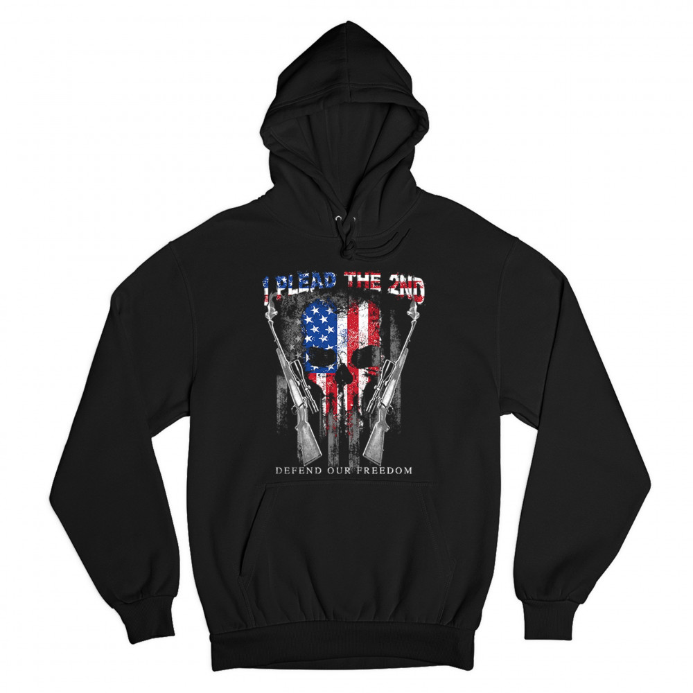 I PLEAD THE 2ND DEFEND OUR FREEDOM sweatshirt american flag skull face hoodie black