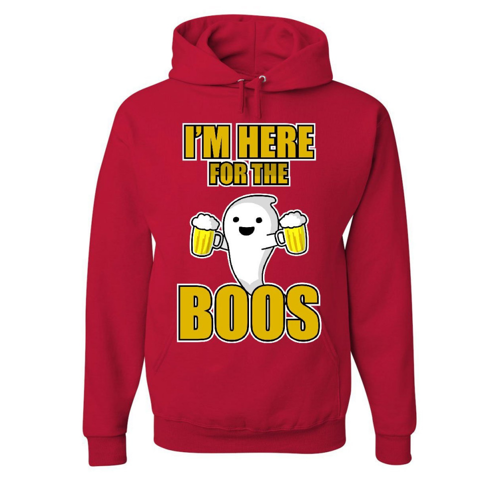 I'M HERE FOR THE BOOS hoodie halloween ghost drinking beer mug sweatshirt red