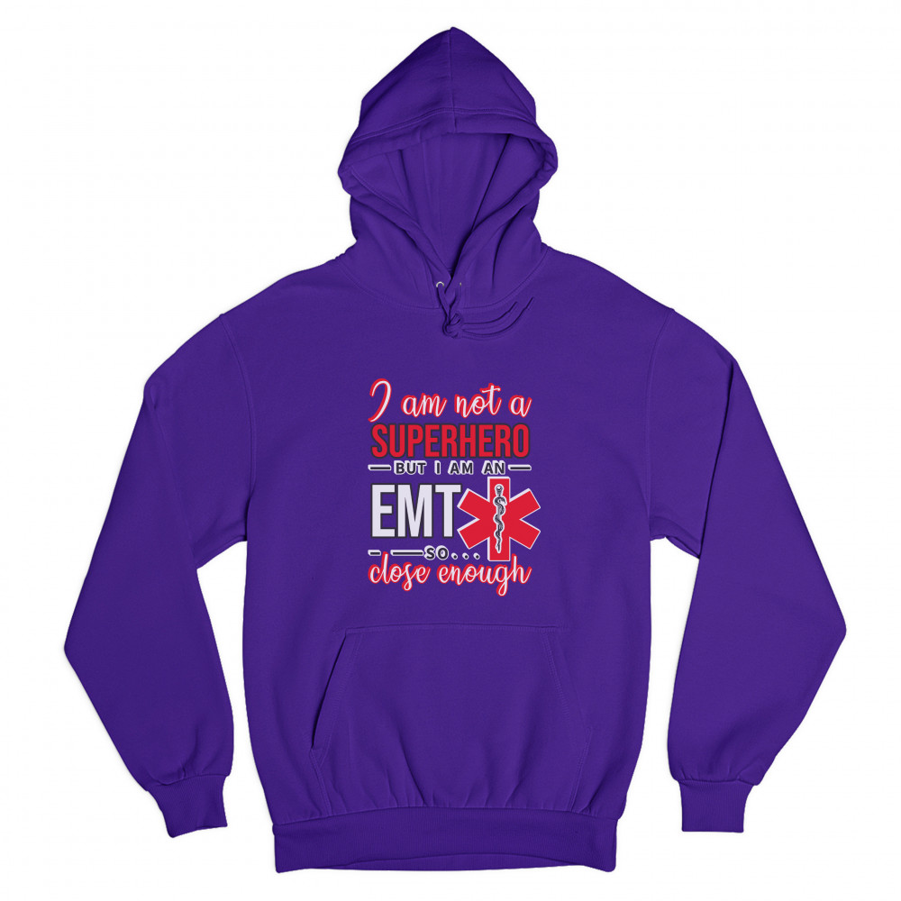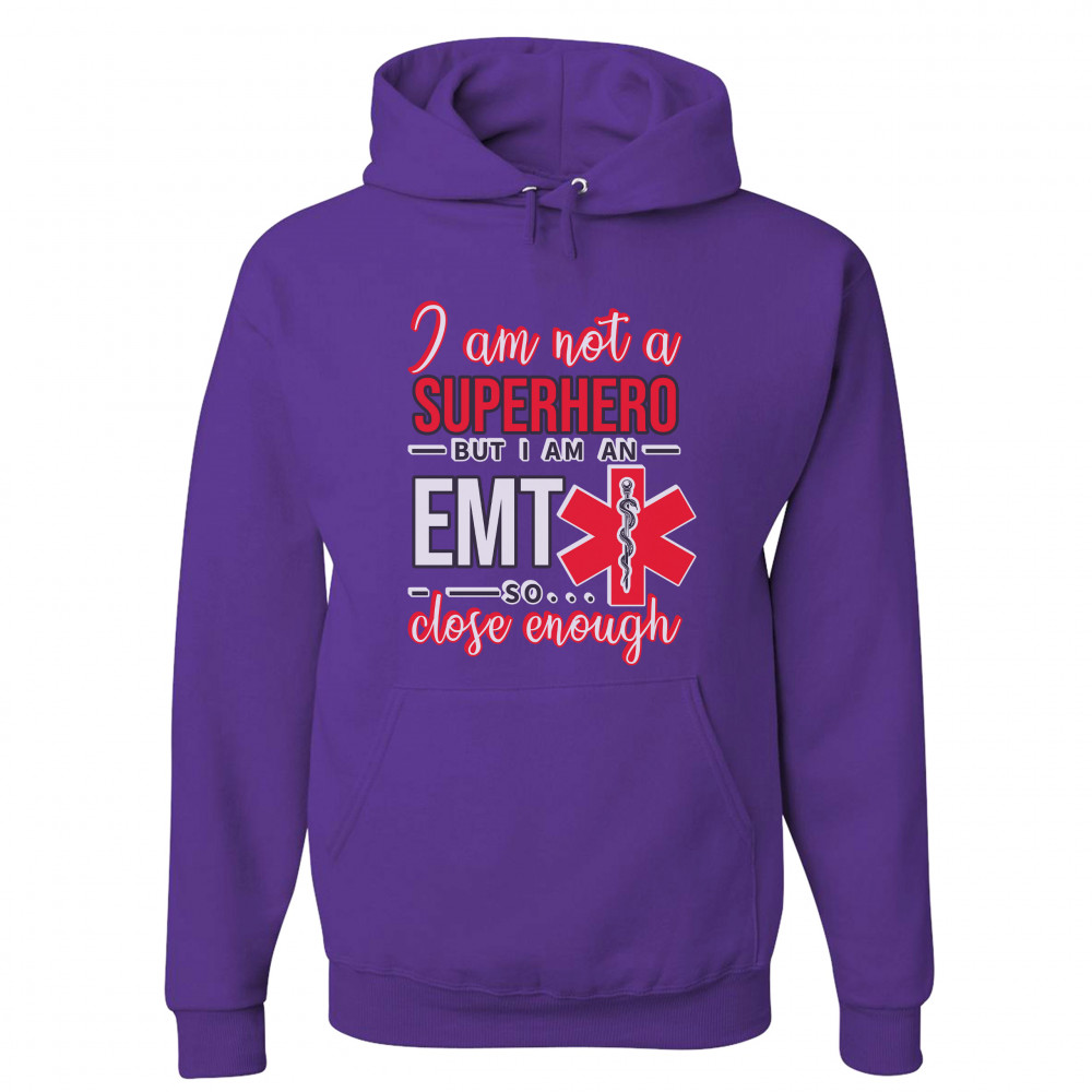 A funny print saying "I'm Not a Superhero But I'm an EMT so Close Enough". All words are written in different fonts. The print also includes the Star of Life, the worldwide recognized symbol of emergency medical services, with the Rod of Asclepius inside of it. A great choice as a gift for a first responder.