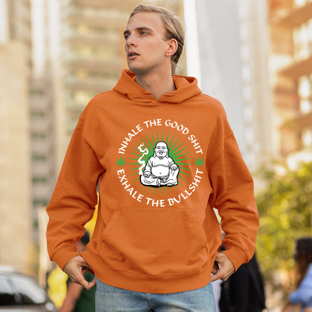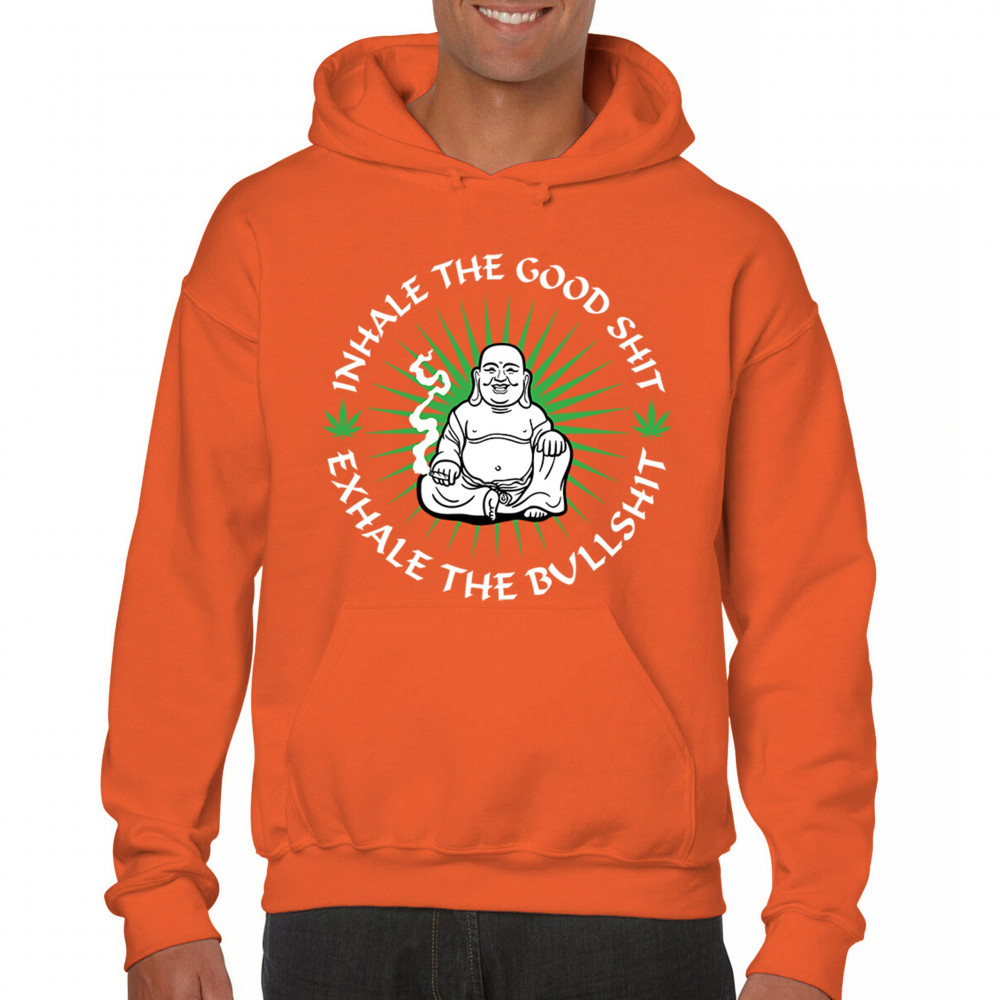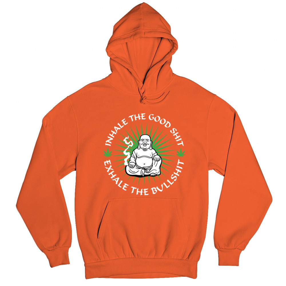 INHALE GOOD SHIT EXHALE BULLSHIT sweatshirt buddha weed cannabis 420 hoodie orange