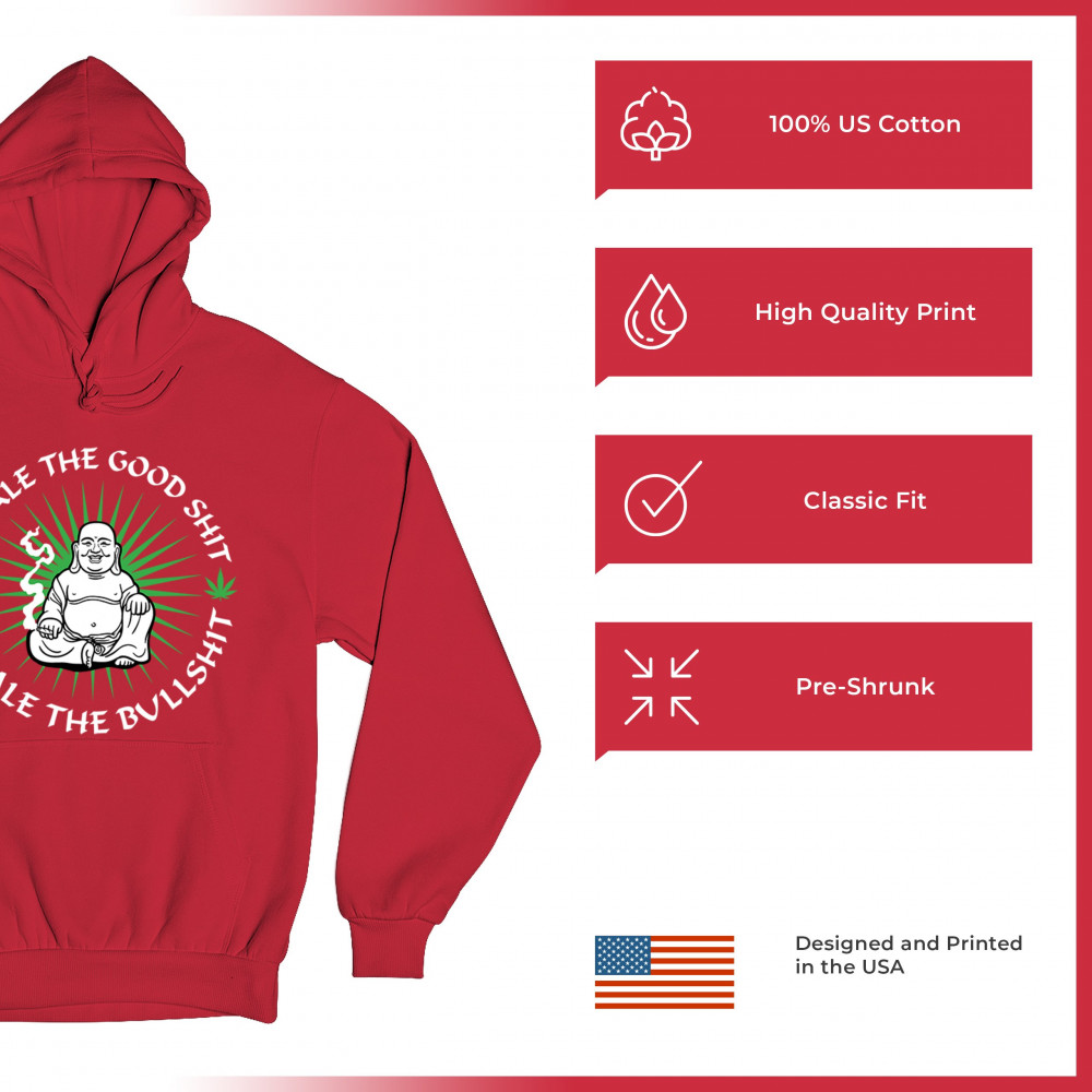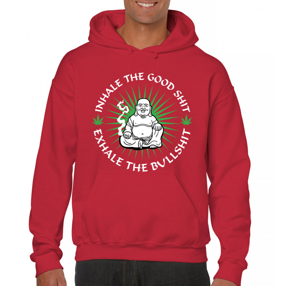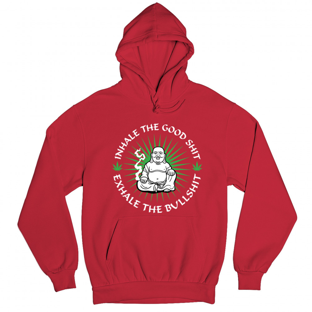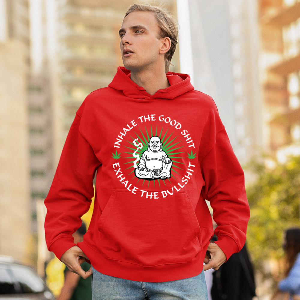 This hilarious and zen-inspired design features a happy Buddha with a joint, surrounded by cannabis leaves. “Inhale the Good Shit, Exhale the Bullshit†delivers chill stoner wisdom with a wink. Ideal for mindful marijuana lovers, 420 fans, or spiritual rebels with a sense of humor and a love for weed.