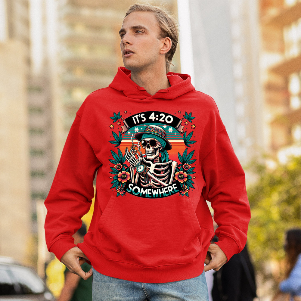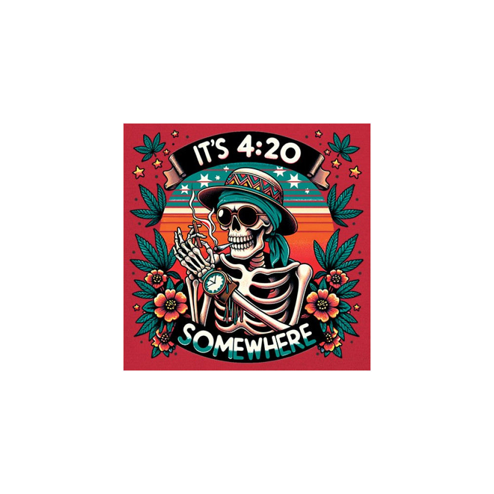 Get lifted with this “It’s 4:20 Somewhere†design featuring a joint-smoking skeleton, tropical sunset, and Deadhead stoner vibes. With bold trippy colors and beachy weed art, this tee is perfect for April 20 parties, summer festivals, and cannabis lovers living the high life.