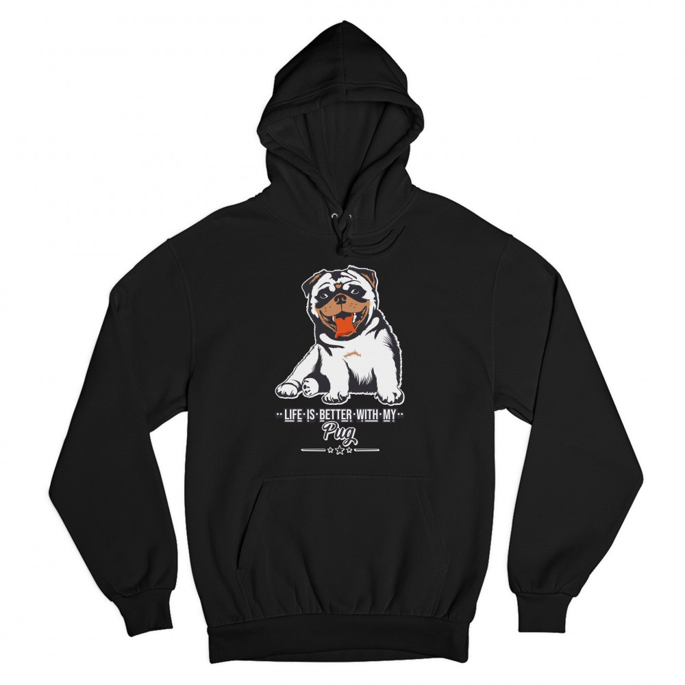 LIFE IS BETTER WITH MY PUG sweatshirt cute pet adorable dog breed hoodie black