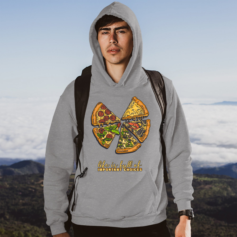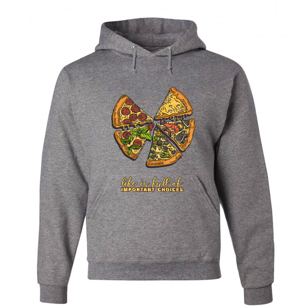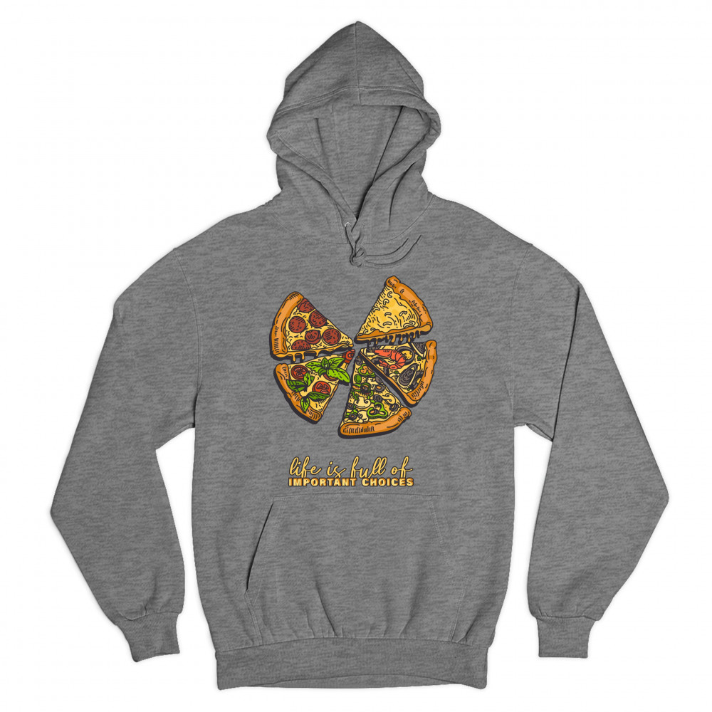 LIFE IS FULL OF IMPORTANT CHOICES sweatshirt funny pepperoni pizza hoodie gray