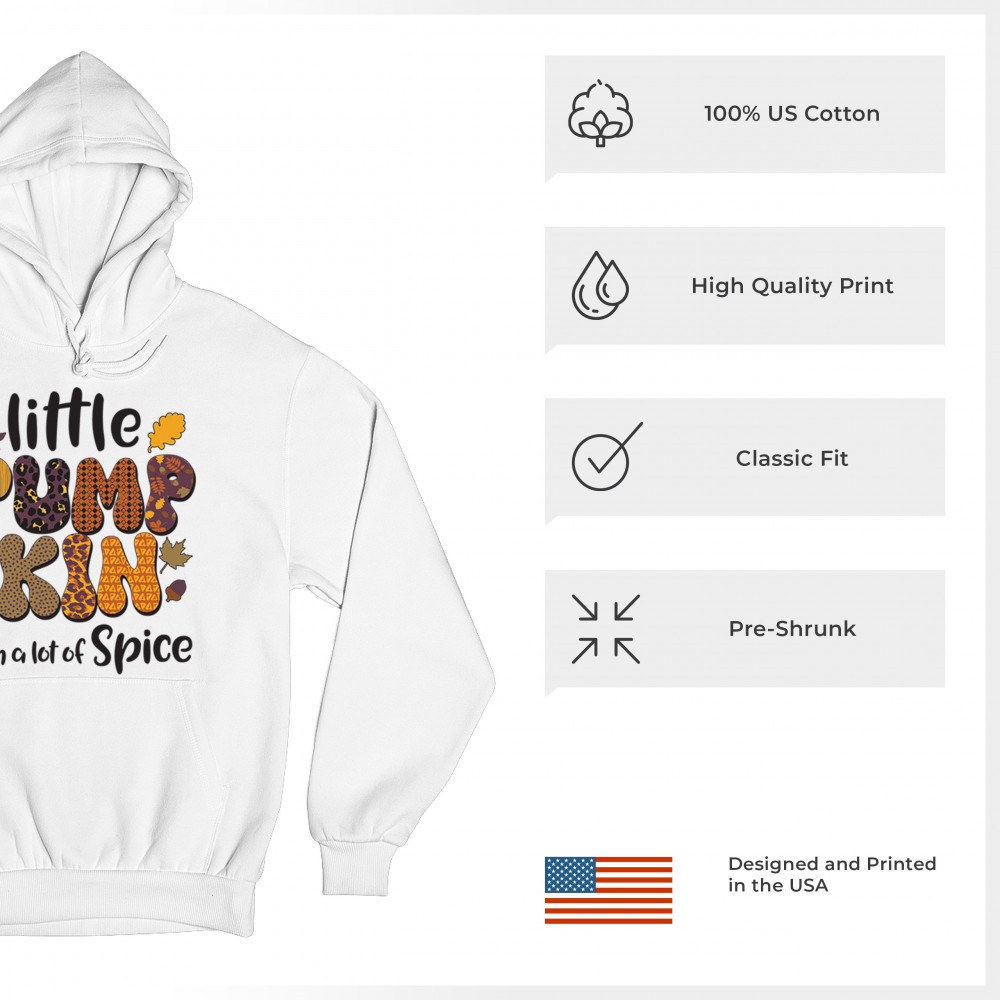 Spice up your fall wardrobe with this 'Little Pumpkin with a Lot of Spice' design, perfect for adding a festive touch to your seasonal outings. Whether you're visiting the pumpkin patch or enjoying a cozy autumn night, this playful design is a fun and vibrant way to embrace the fall spirit. Ideal for Thanksgiving, Halloween, and beyond!