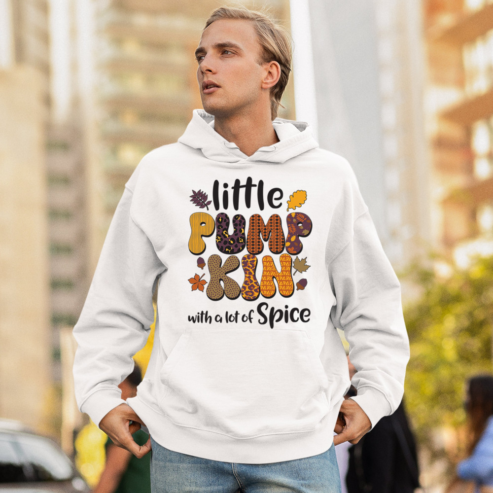 LITTLE PUMPKIN WITH A LOT OF SPICE sweatshirt cute fall thanksgiving hoodie white