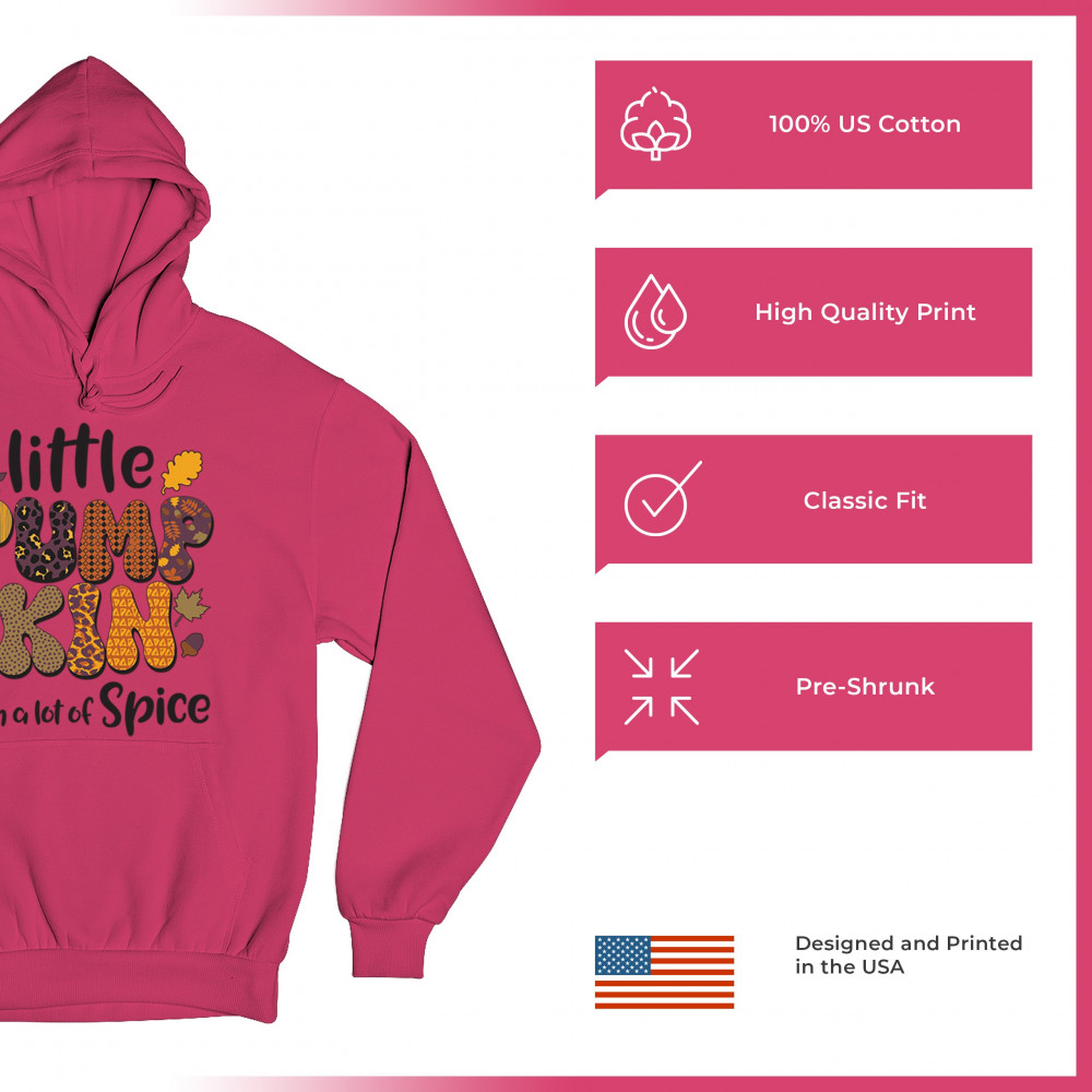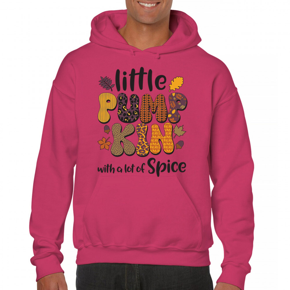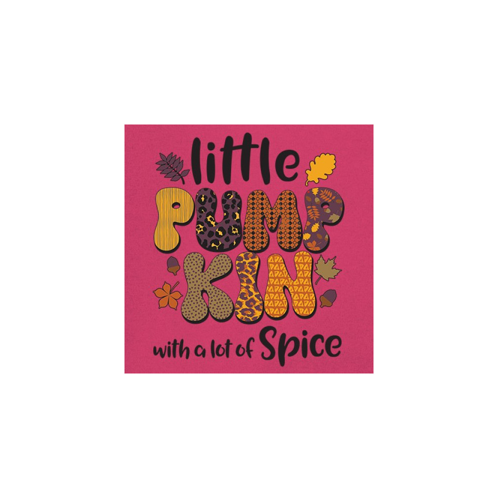 Celebrate the fall season with this playful 'Little Pumpkin with a Lot of Spice' design, perfect for festive gatherings and pumpkin patch visits.