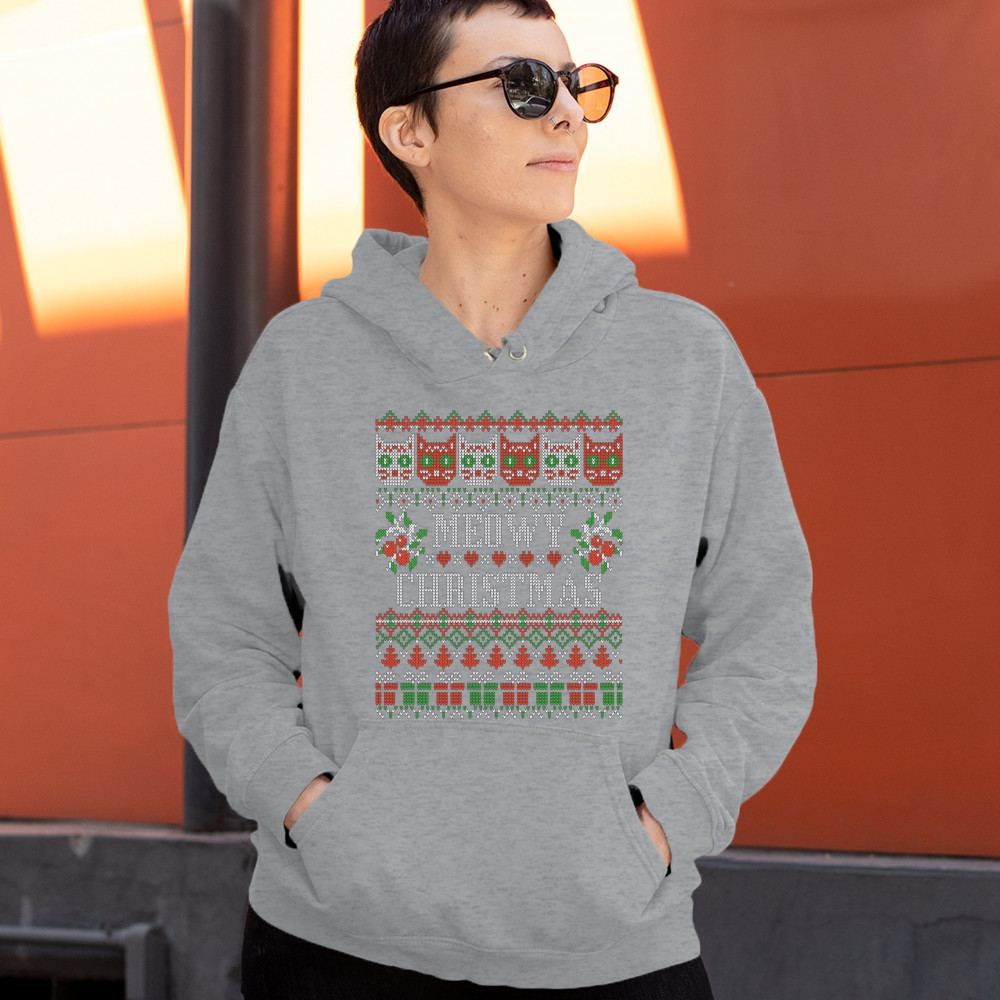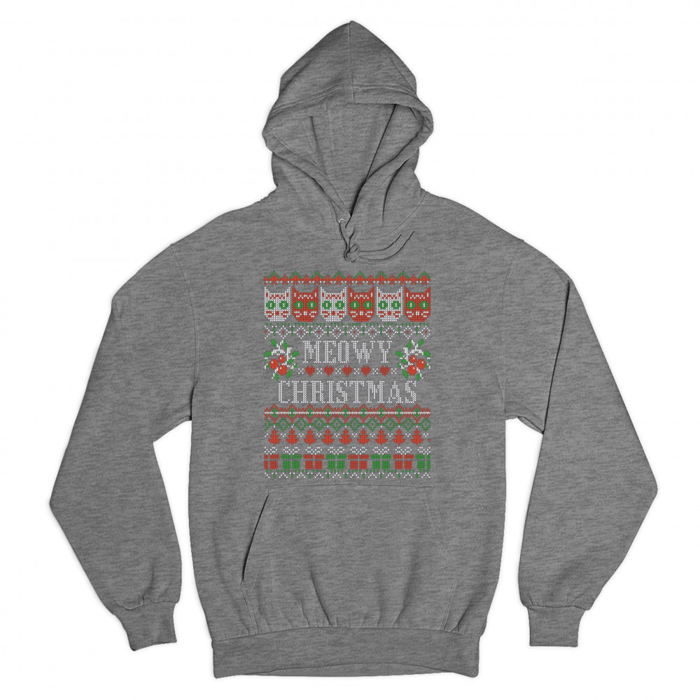 MEOWY CHRISTMAS sweatshirt ugly sweater cat lover funny xmas hoodie gray
