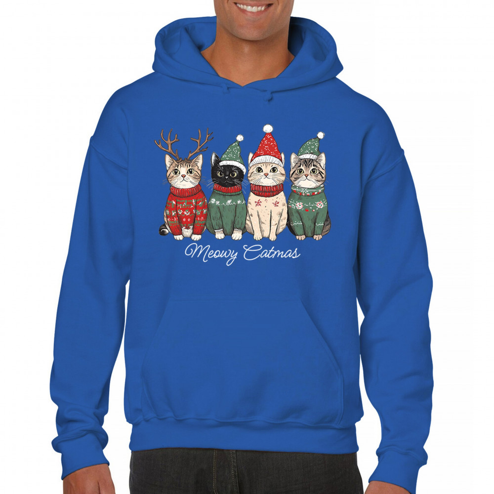 Cute Meowy Catmas design with festive kittens, perfect for cat lovers wanting a cozy holiday graphic and fun Christmas pet theme.