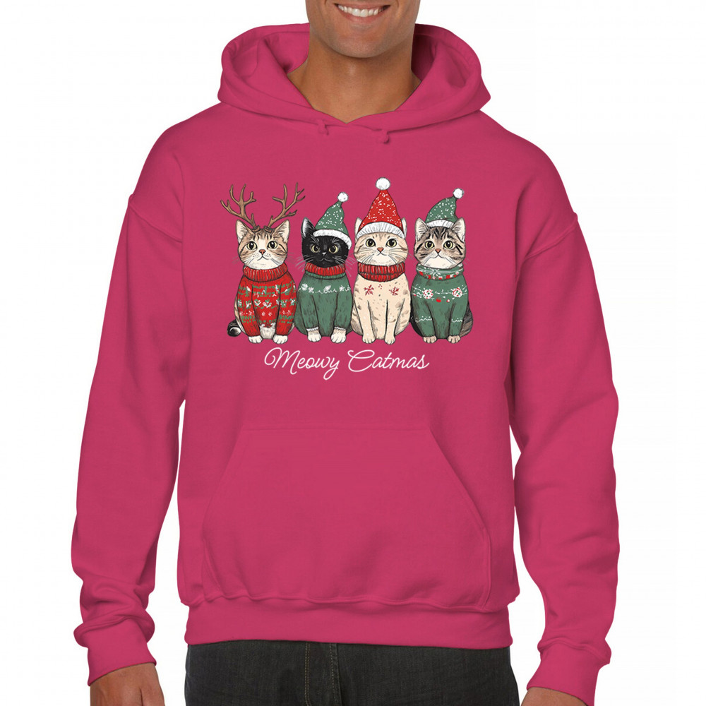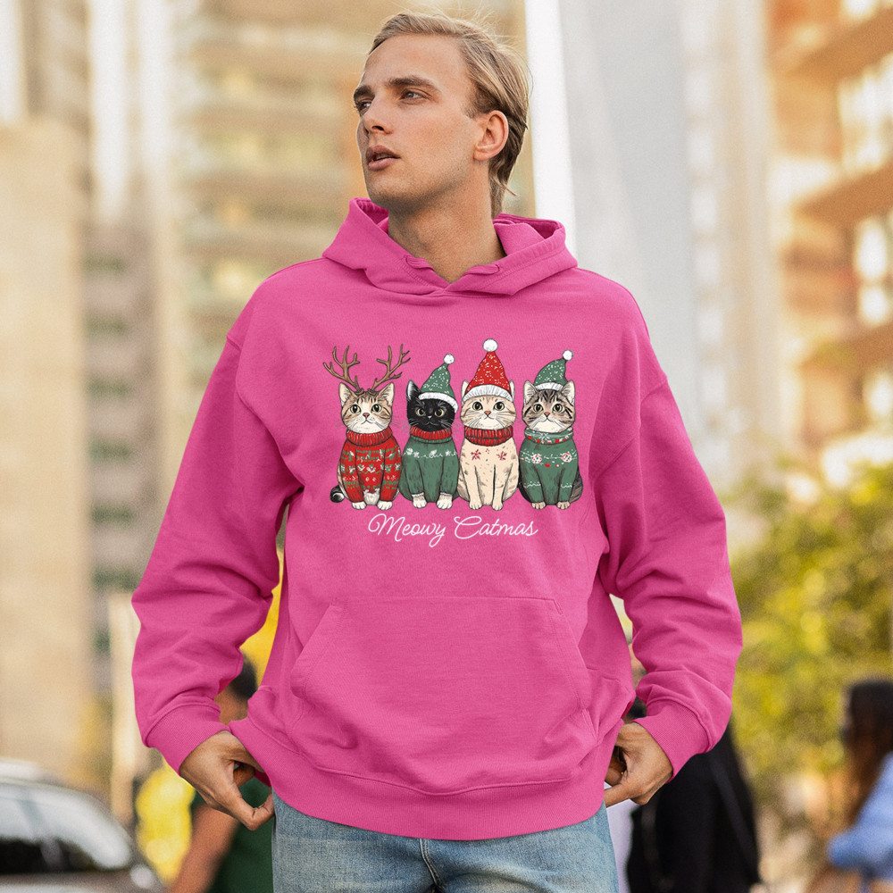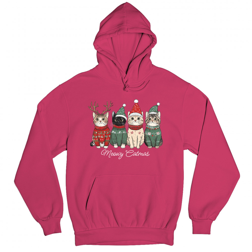 Cute Meowy Catmas design with festive kittens, perfect for cat lovers wanting a cozy holiday graphic and fun Christmas pet theme.