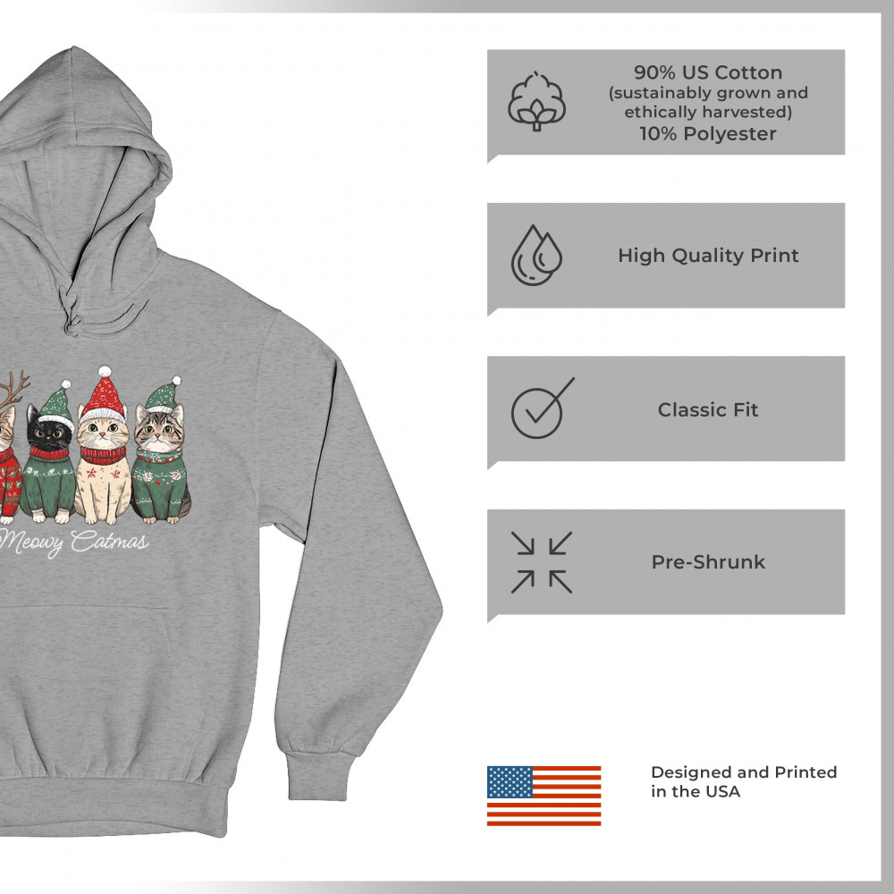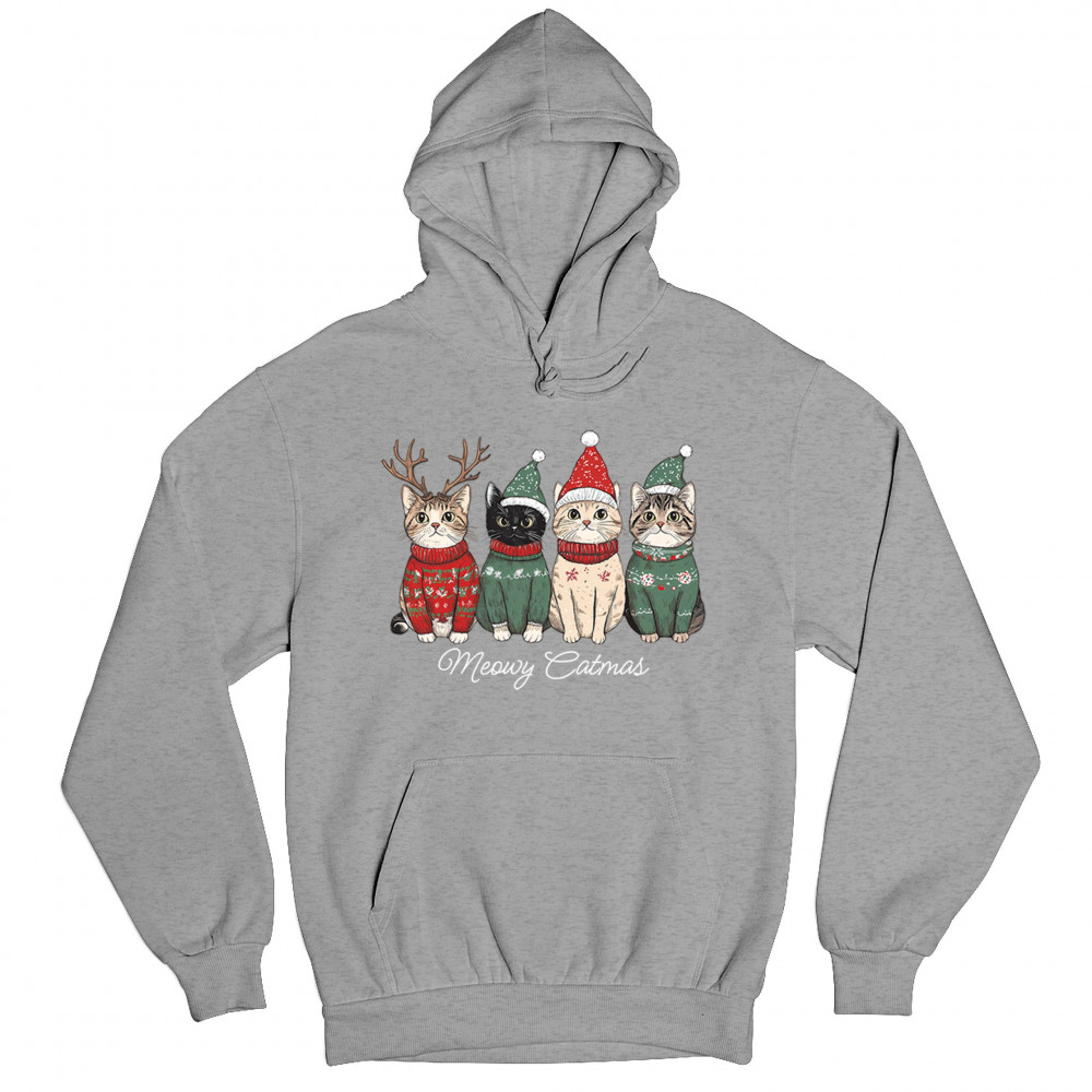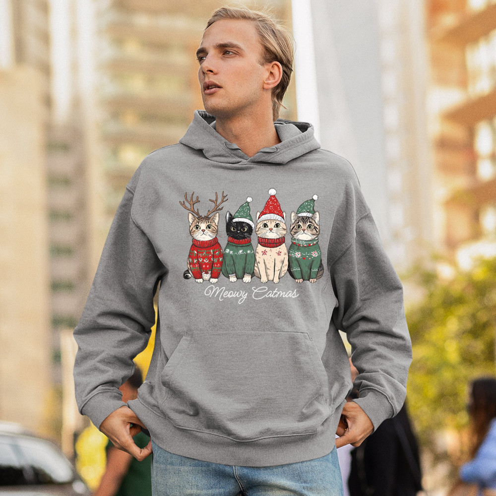 Cute Meowy Catmas design with festive kittens, perfect for cat lovers wanting a cozy holiday graphic and fun Christmas pet theme.