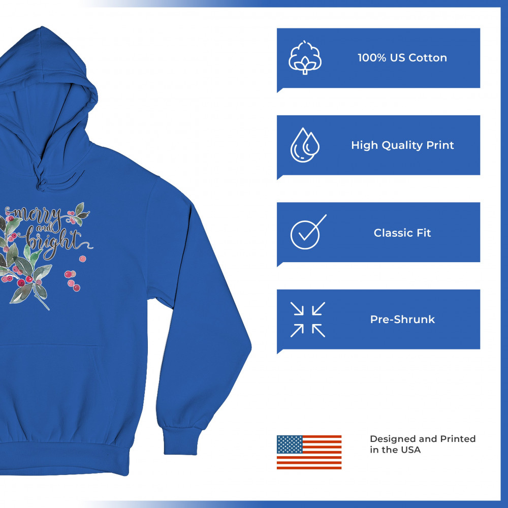 MERRY AND BRIGHT CUTE CHRISTMAS sweatshirt jolly santa clause xmas hoodie royal blue