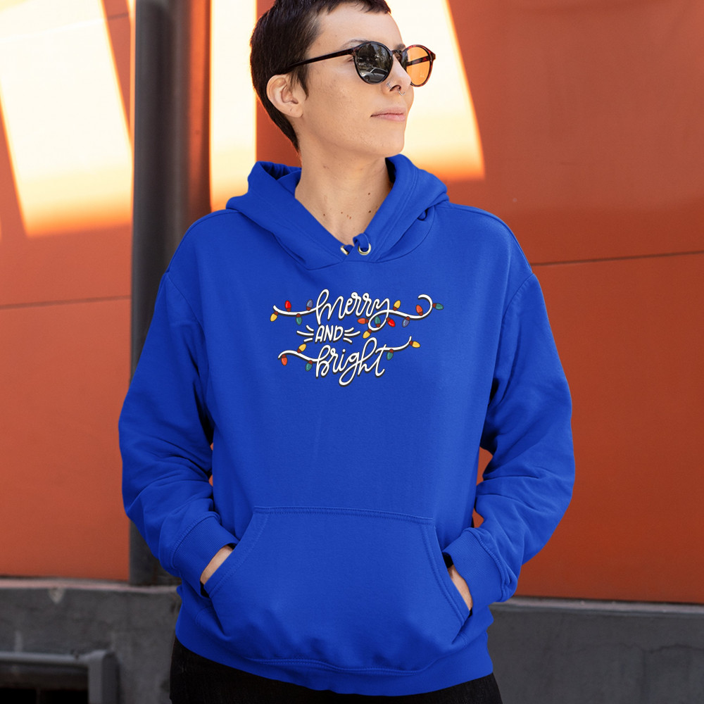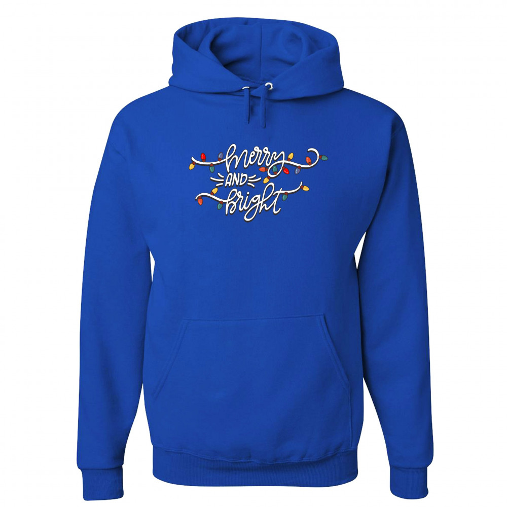 MERRY AND BRIGHT sweatshirt christmas eve holiday spirit festive hoodie royal blue