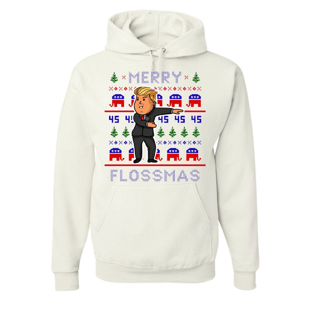 MERRY FLOSSMASS merry flossmas hoodie christmas xmas ugly sweater trump floss sweatshirt white