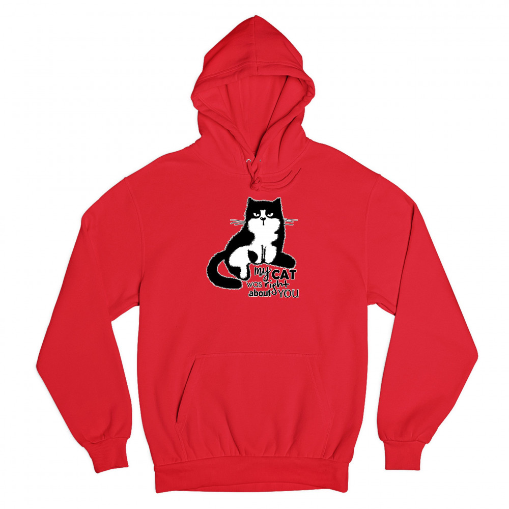MY CAT WAS RIGHT ABOUT YOU sweatshirt cat lover funny kitty kitten hoodie red