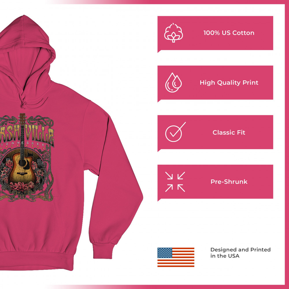 Vintage Nashville Tennessee design with rustic guitar and roses. Great for concerts, country music fans, road trips, and souvenir wear.