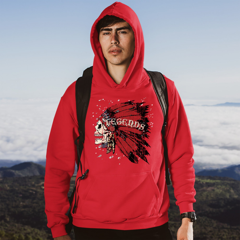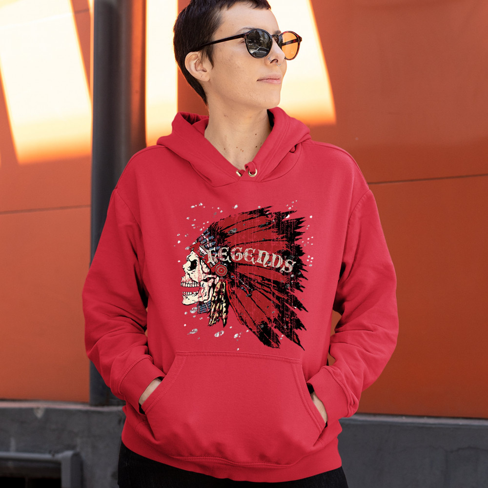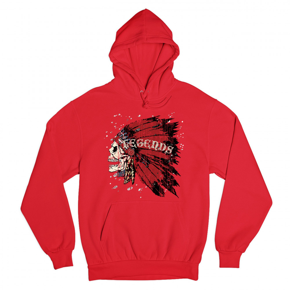 NATIVE AMERICAN LEGENDS sweatshirt skull face war bonnet headdress hoodie red