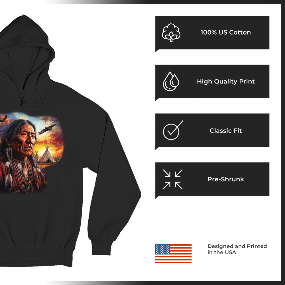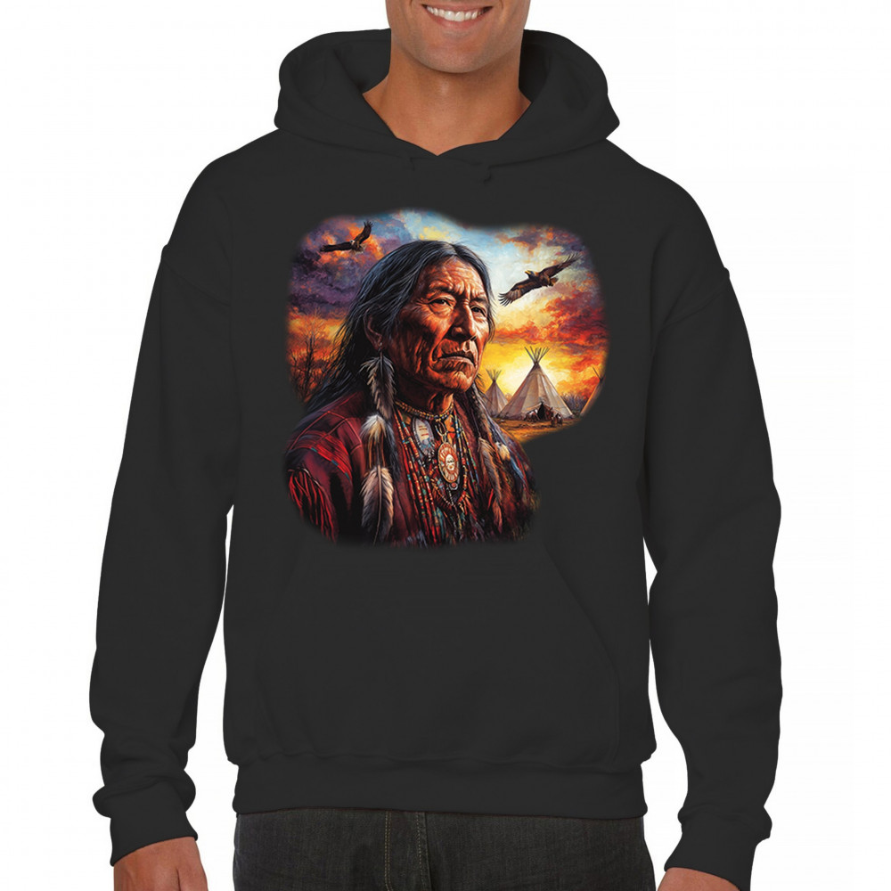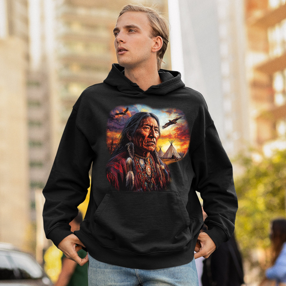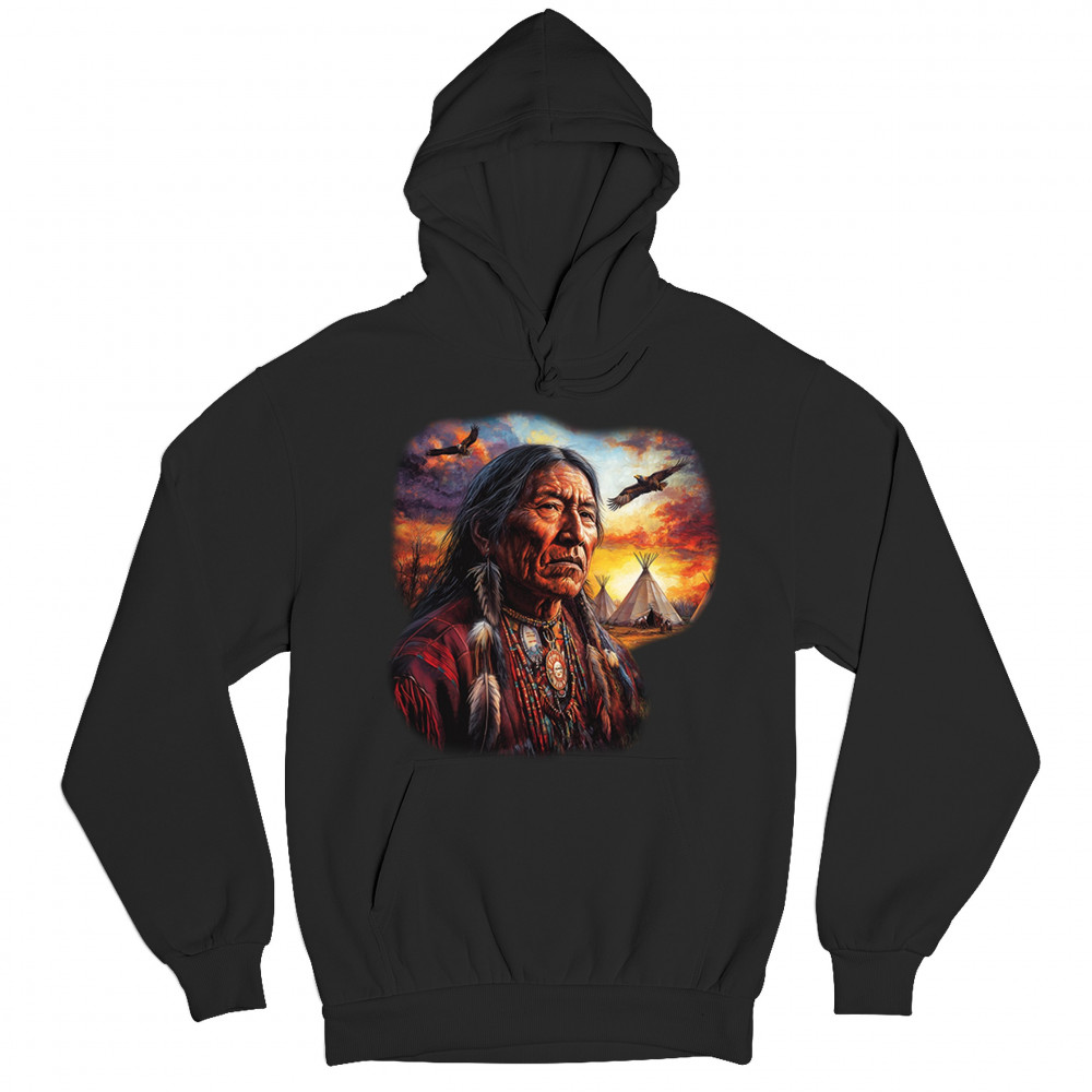 NATIVE AMERICAN VILLAGE CHIEF sweatshirt tribal warrior spirit sunset hoodie black