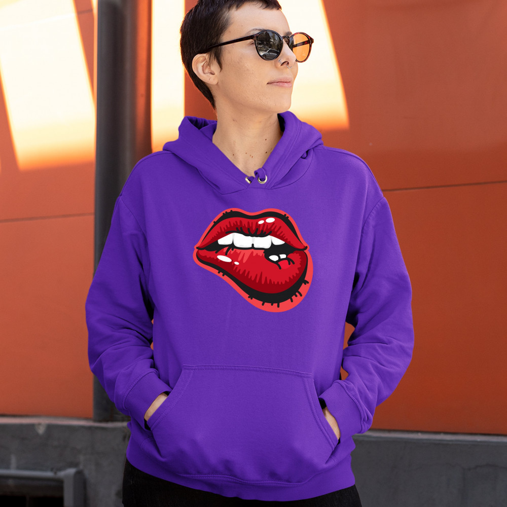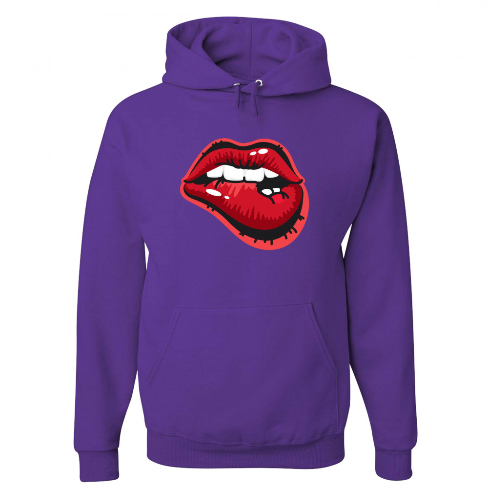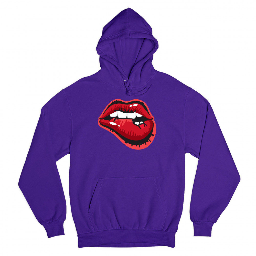 NAUGHTY BITING LIPS sweatshirt hot luscious sexy red lips hoodie purple