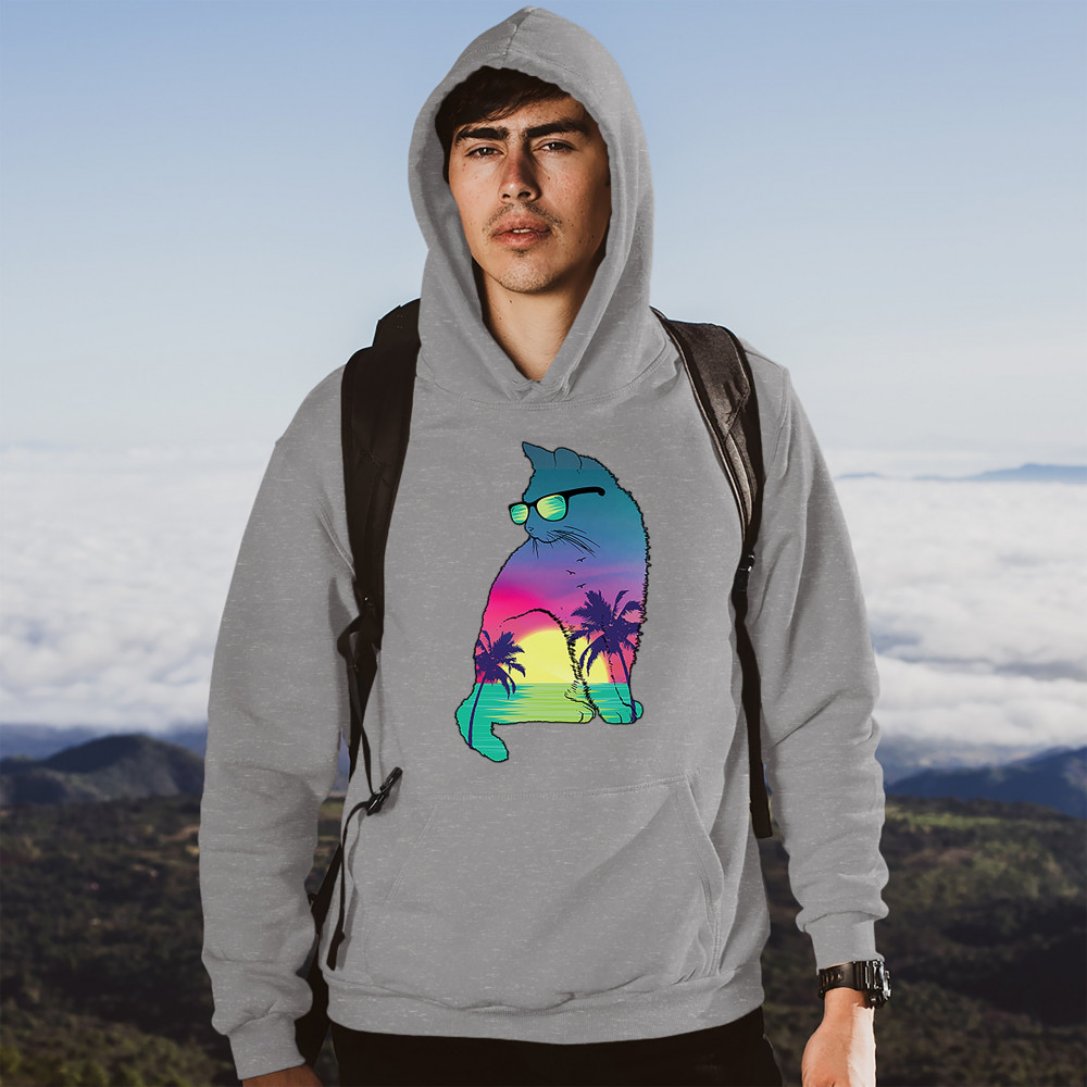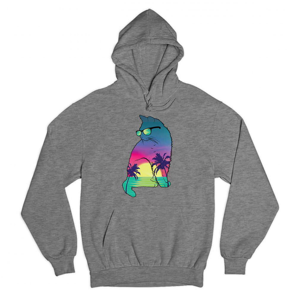 NEON CAT IN SUNGLASSES sweatshirt tropic kitten summer beach kitty hoodie gray