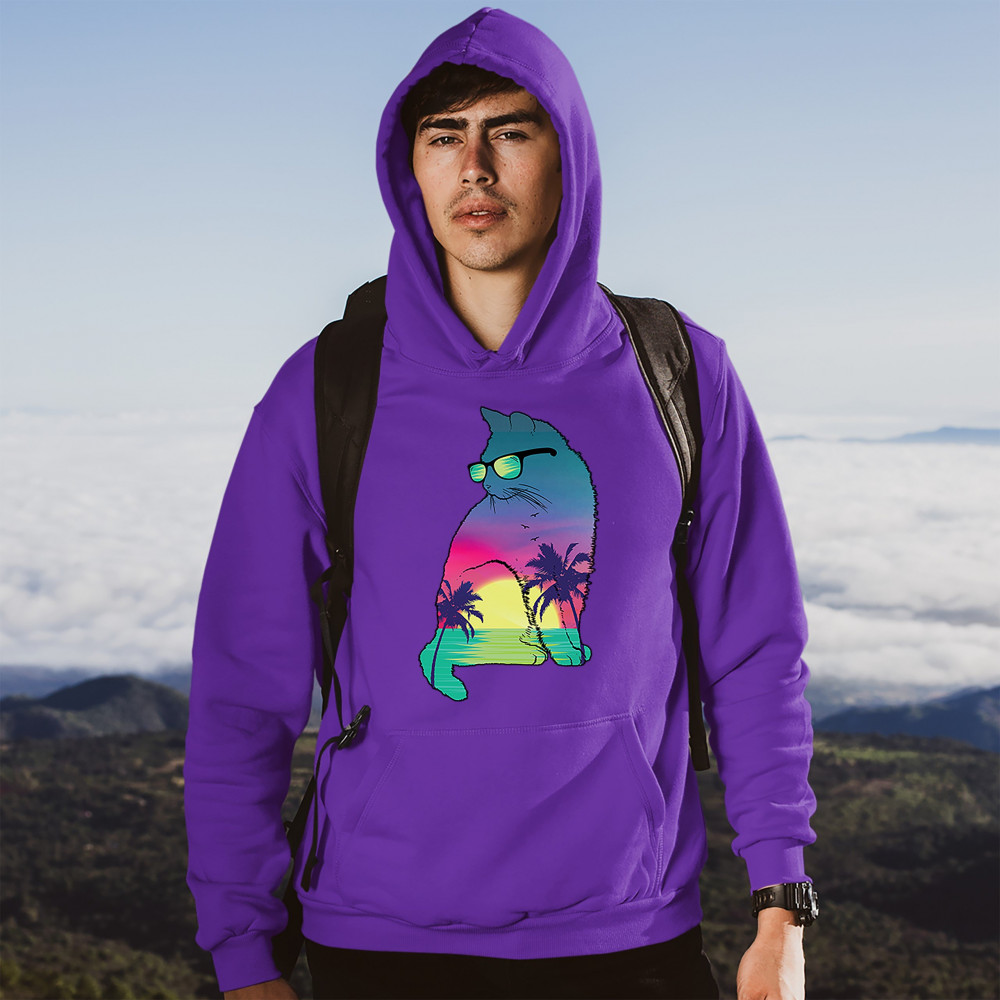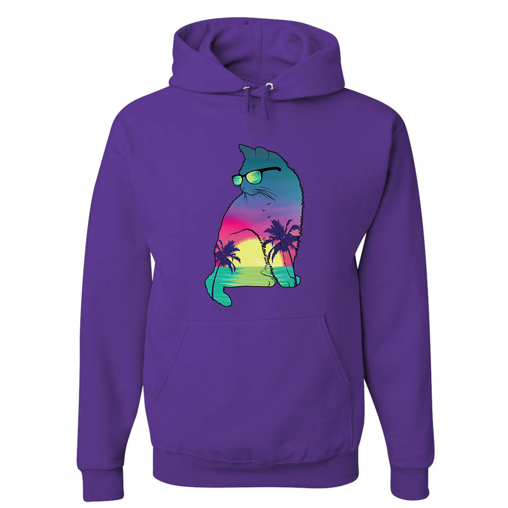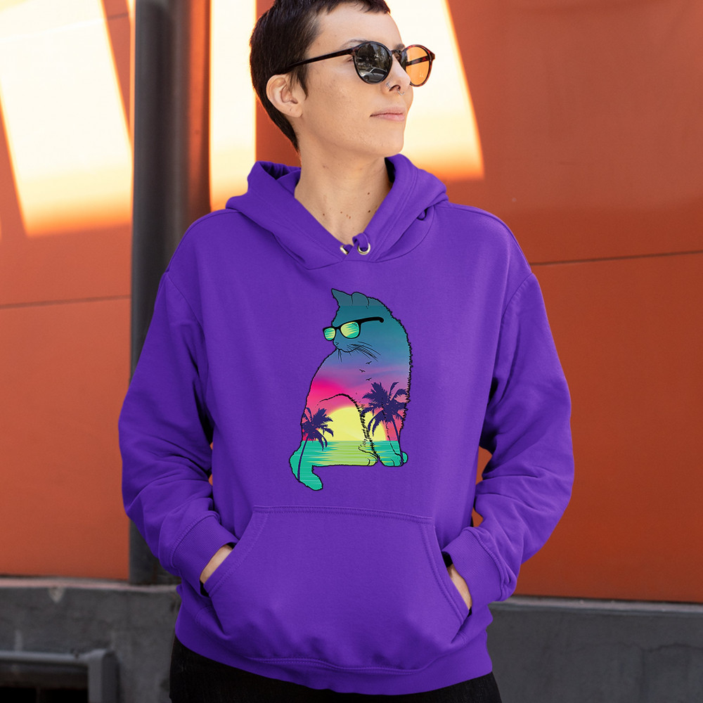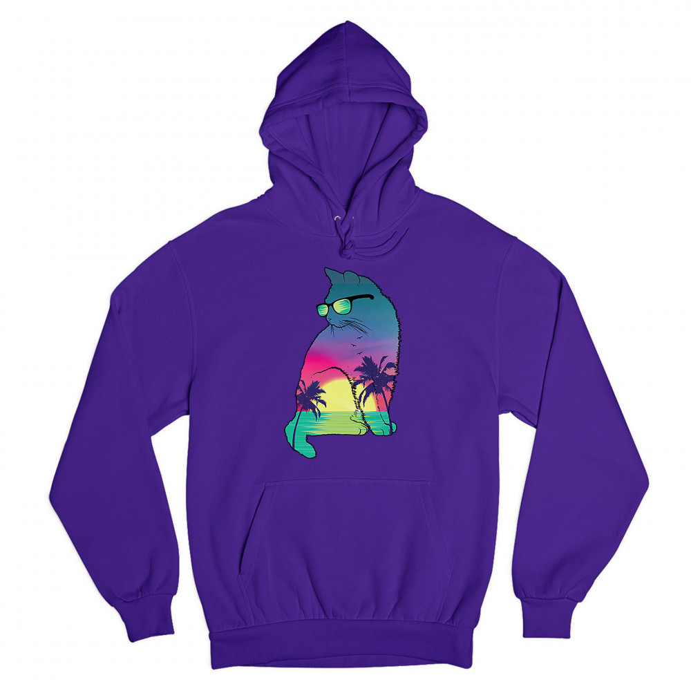 NEON CAT IN SUNGLASSES sweatshirt tropic kitten summer beach kitty hoodie purple