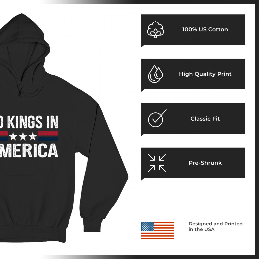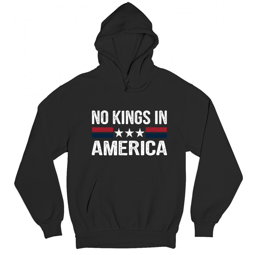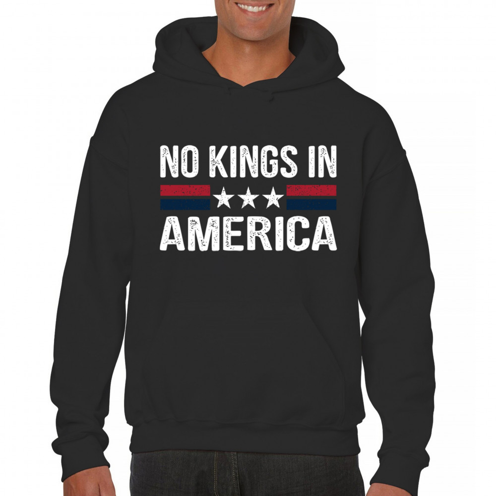 Show your patriotic spirit with the "No Kings in America" design—a bold declaration of freedom and civic pride. Featuring classic red, white, and blue tones, it's perfect for Fourth of July celebrations, political events, or history lovers. Celebrate democracy and independence with style and purpose.