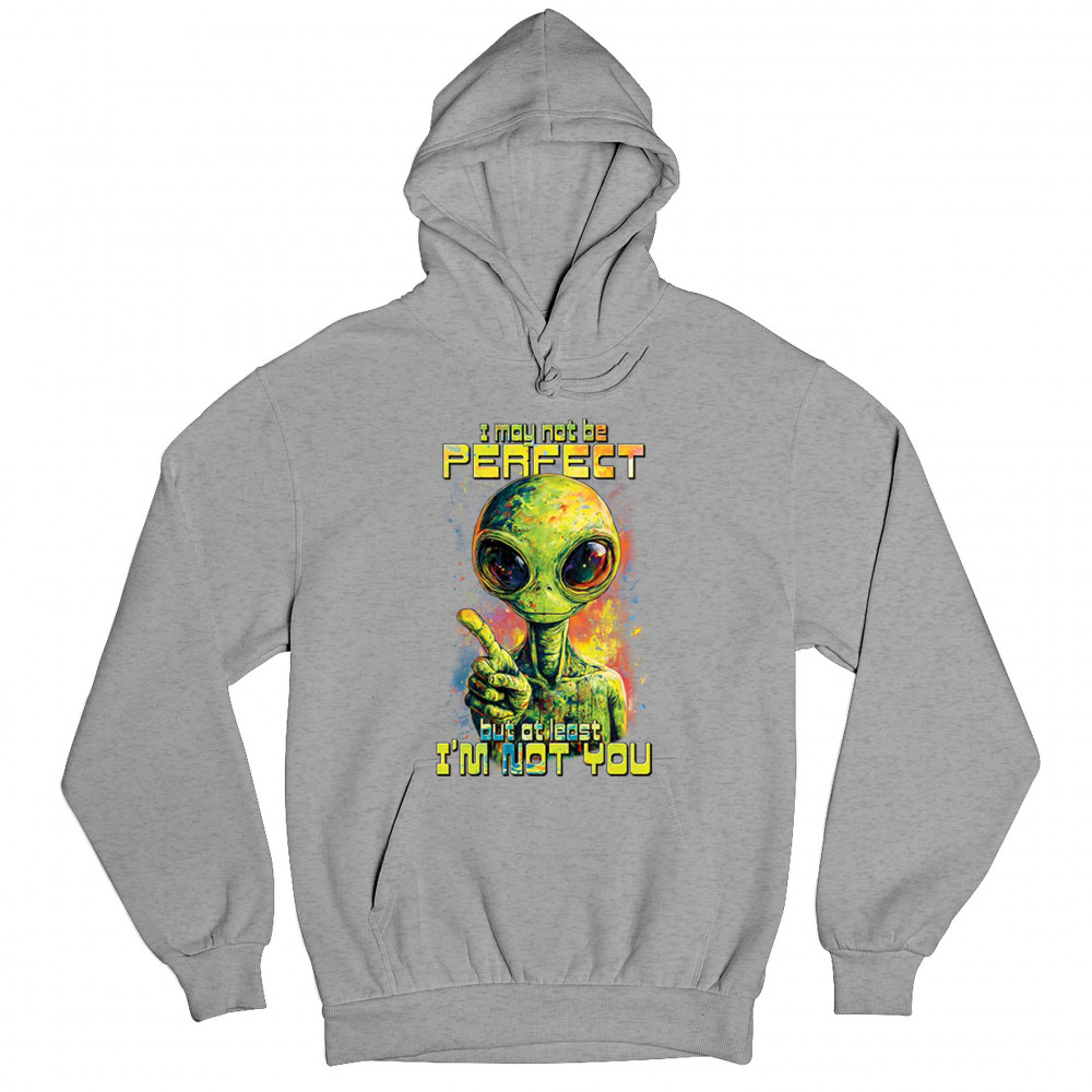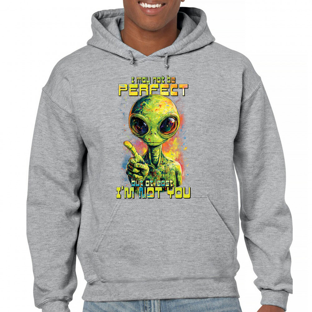 This smug alien design delivers sharp sarcastic humor with vibrant cosmic flair. Featuring a big-eyed extraterrestrial and the quote “I may not be perfect, but at least I’m not you,†it’s perfect for sci-fi fans, alien lovers, jokesters, and oddballs alike. A bold, funny statement for parties, UFO events, and festivals.