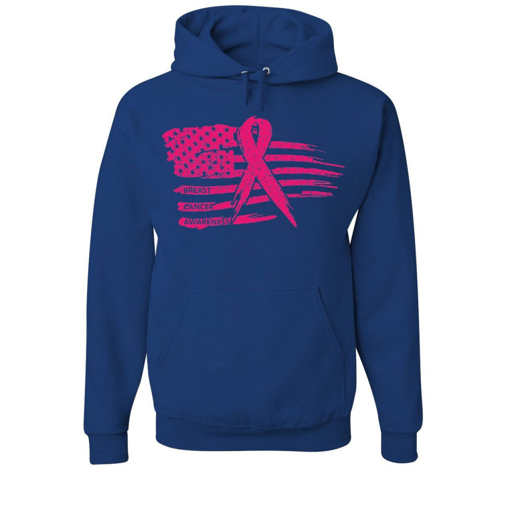 PINK RIBBON AMERICAN FLAG pink ribbon flag hoodie breast cancer awareness hope survivor sweatshirt royal blue