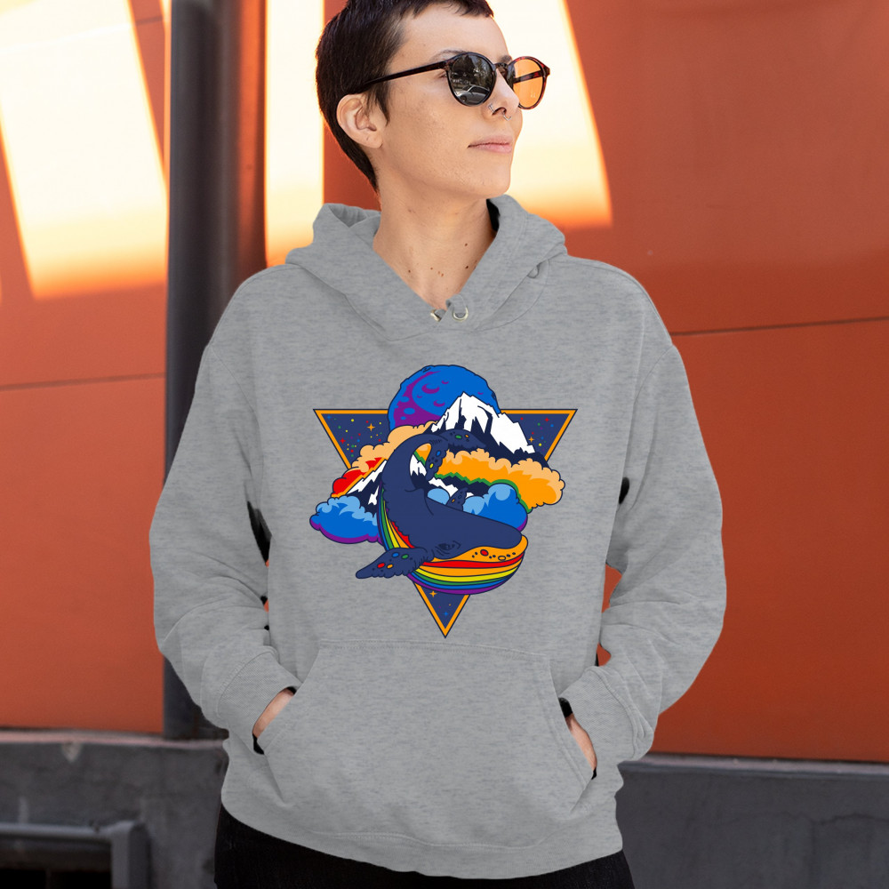 RAINBOW SPACE WHALE sweatshirt lgbt pride queer tolerance trippy hoodie gray