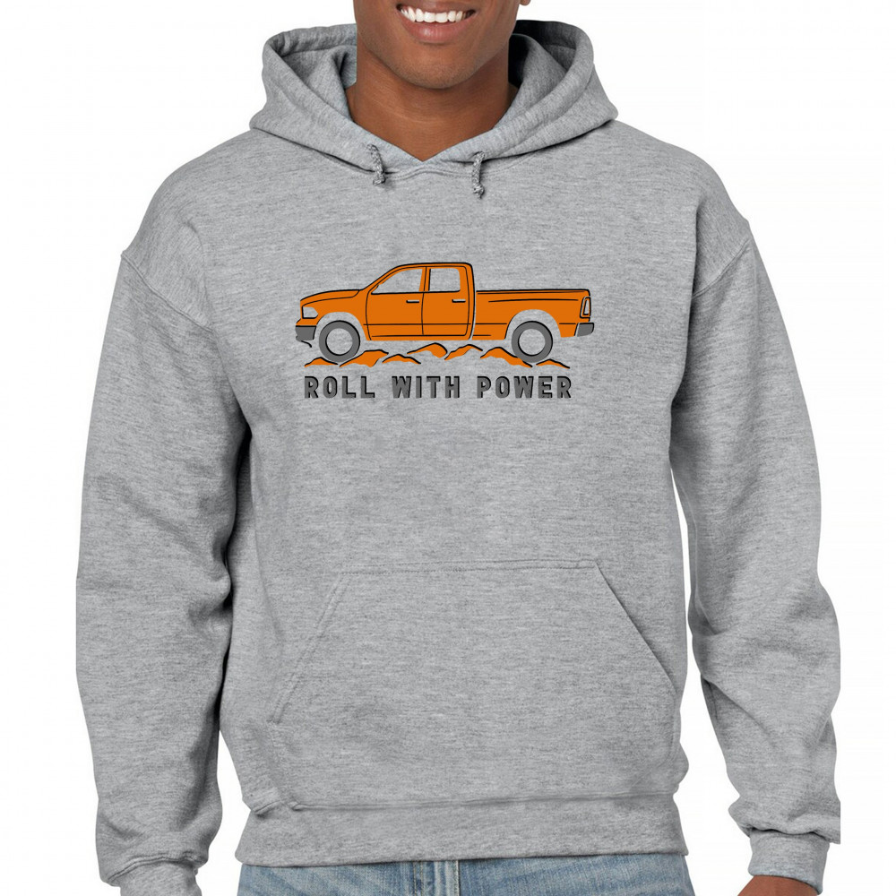 Pickup truck design for off-road fans and truck lovers. Show your road power and style with this bold “Roll With Power†truck graphic.