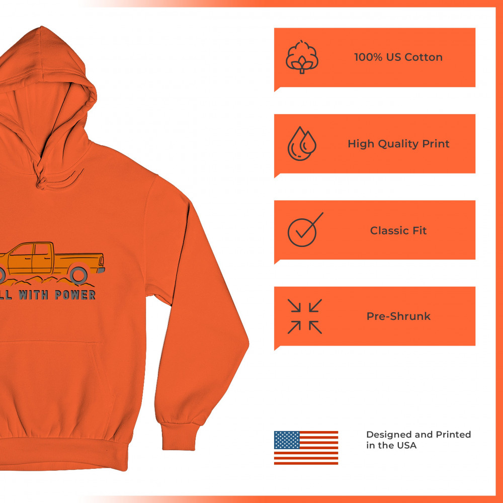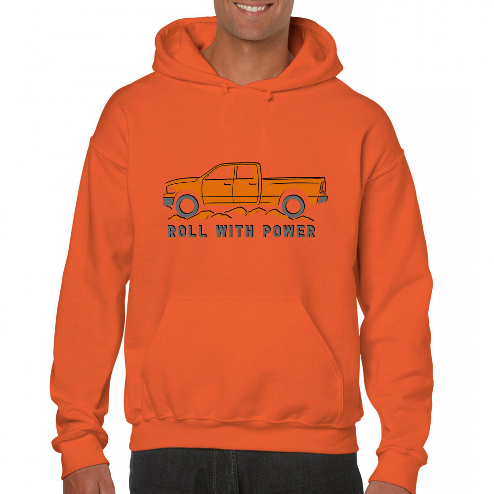 ROLL WITH POWER AMERICAN PICKUP TRUCK unisex hoodie offroad 4x4 us rugged orange