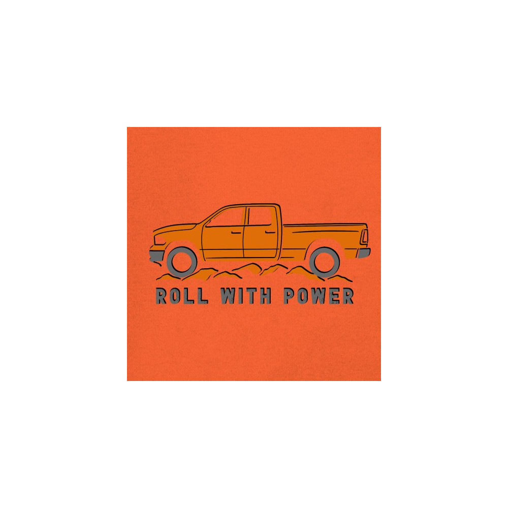 Pickup truck design for off-road fans and truck lovers. Show your road power and style with this bold “Roll With Power” truck graphic.