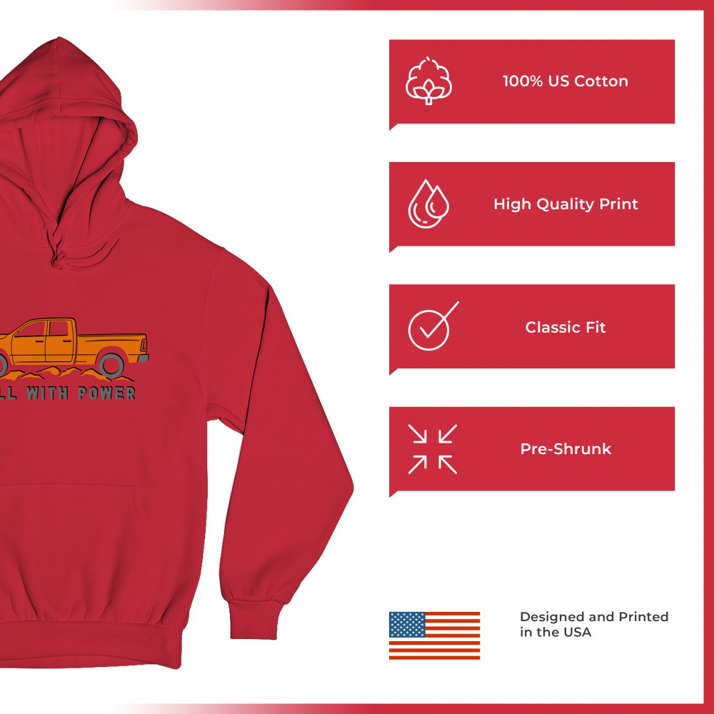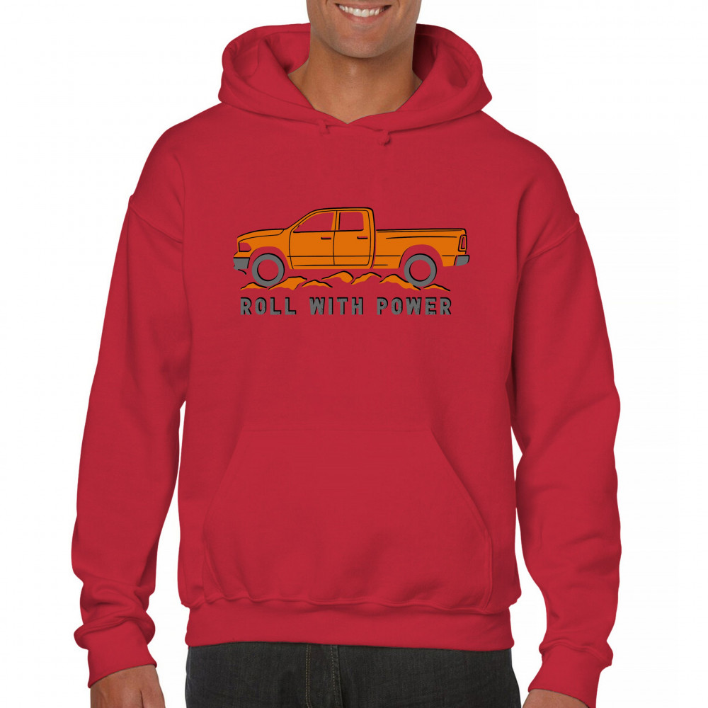 Pickup truck design for off-road fans and truck lovers. Show your road power and style with this bold “Roll With Power†truck graphic.
