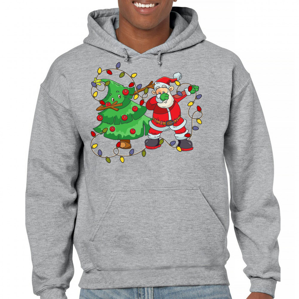 SANTA CLAUS DABBING WITH CHRISTMAS TREE sweatshirt merry and bright hoodie gray