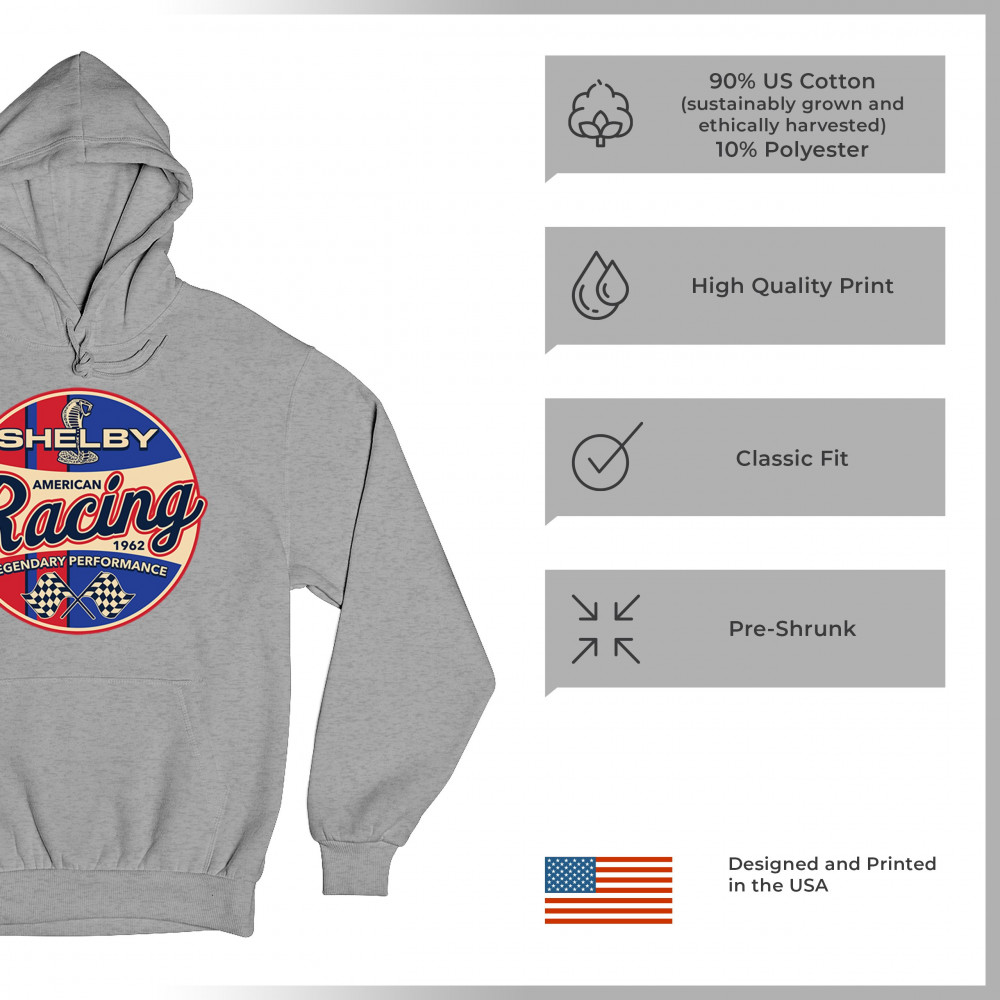Rev up your wardrobe with our Shelby American Racing design, a tribute to 50 years of Ford Mustang glory and Carroll Shelby's racing legacy.