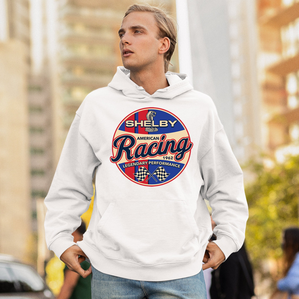 Rev up your wardrobe with our Shelby American Racing design, a tribute to 50 years of Ford Mustang glory and Carroll Shelby's racing legacy.