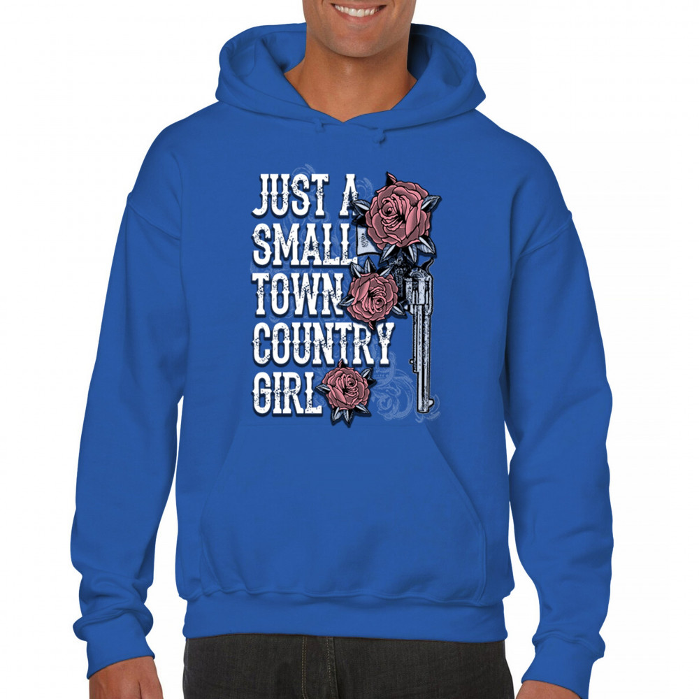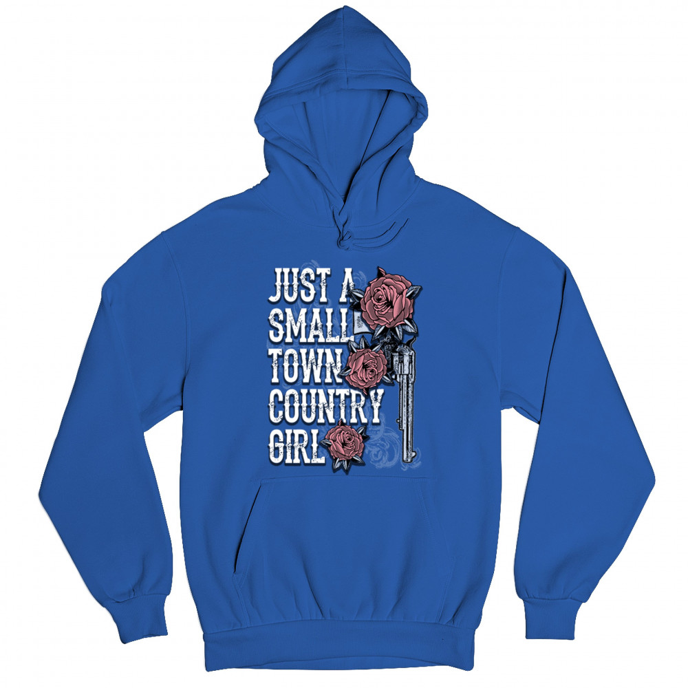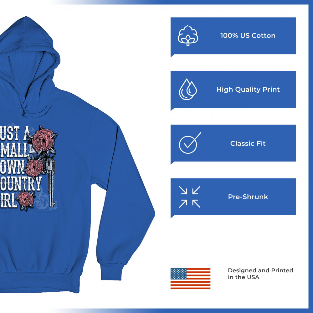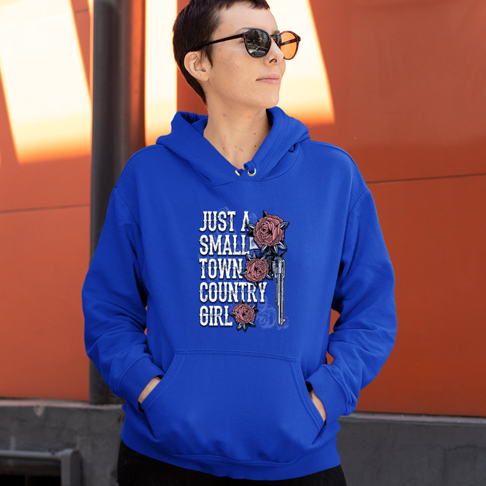 Rustic small town country girl design with rose and revolver art. Great for cowgirls, rodeos, fairs, and southern pride style.