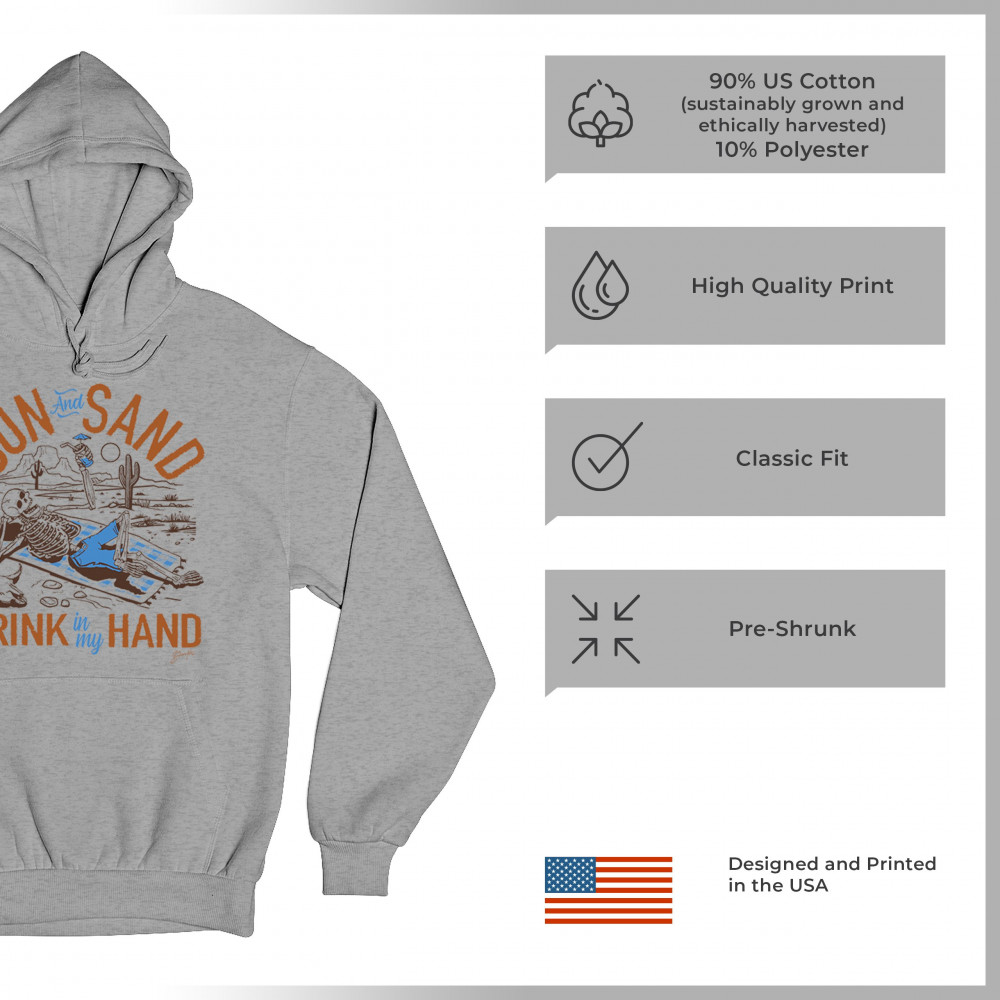 SUN AND SAND DRINK IN MY HAND sweatshirt funny dry heat desert beach hoodie gray