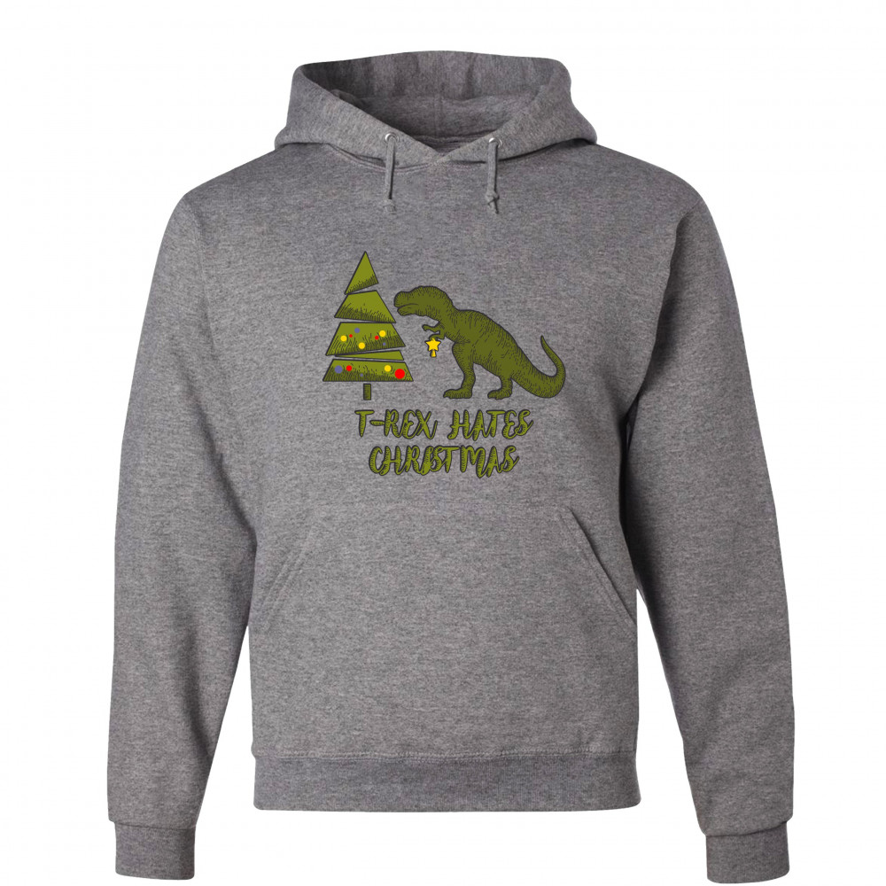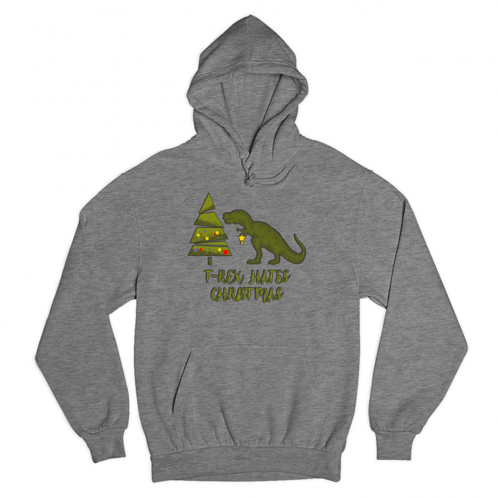 T-REX HATES CHRISTMAS sweatshirt funny dinosaur xmas eve festive hoodie gray