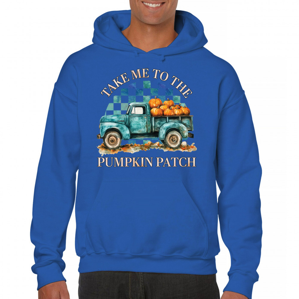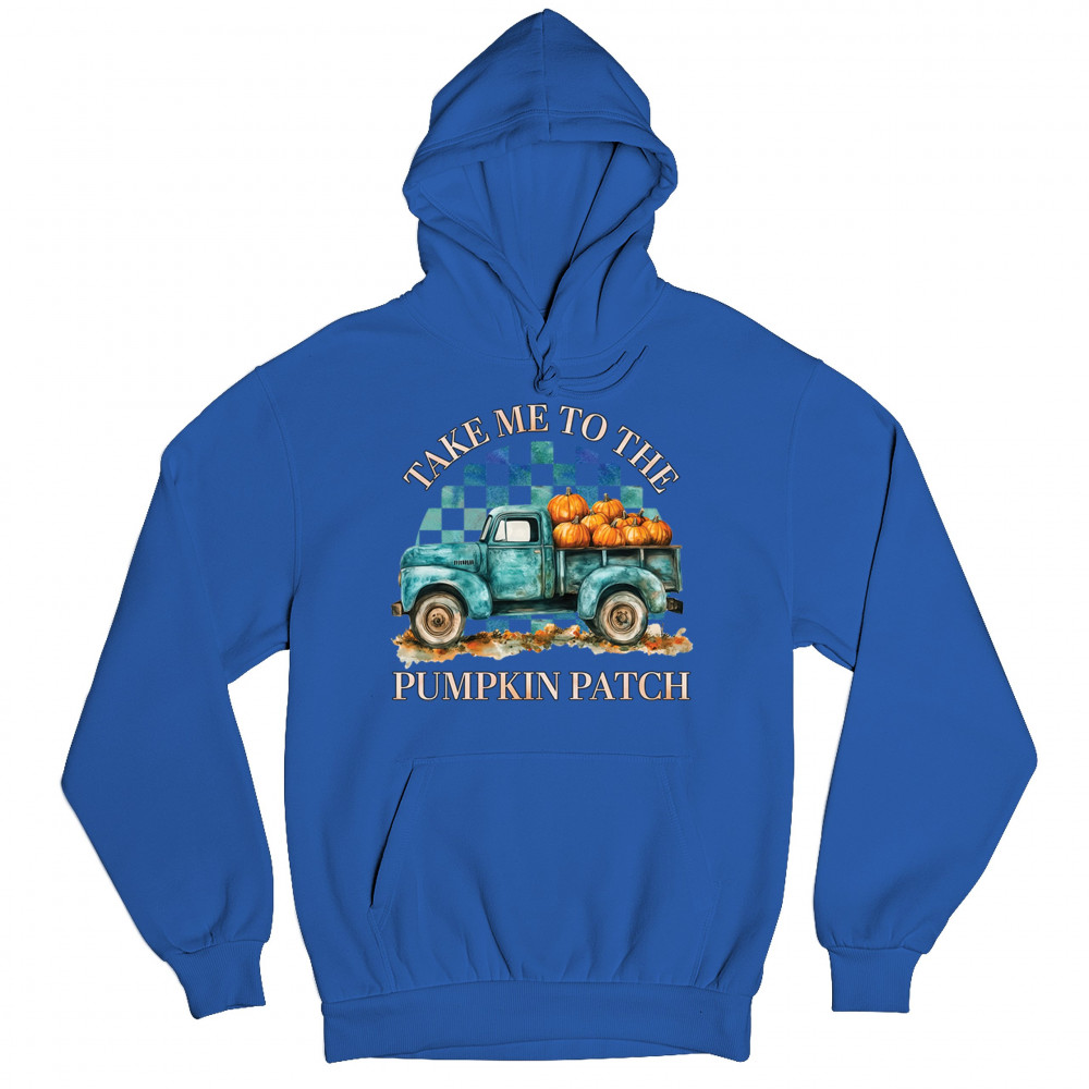 Celebrate autumn in style with the "Take Me to the Pumpkin Patch" design, featuring a vintage truck and festive pumpkins—perfect for fall lovers!