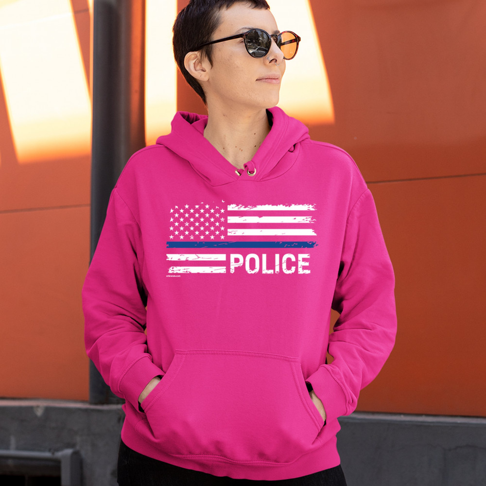 THIN BLUE LINE AMERICAN FLAG sweatshirt police law enforcement hoodie pink
