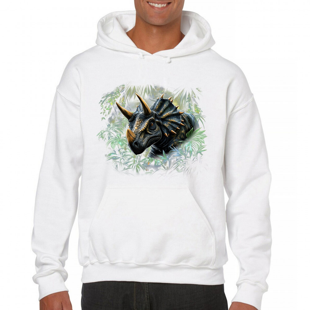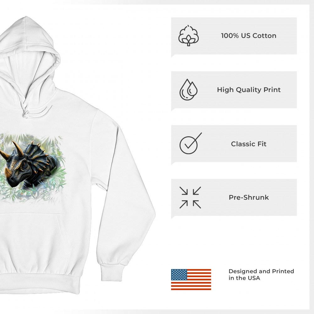 Charge into the past with this vivid triceratops design. Featuring a hyper-detailed horned dinosaur surrounded by jungle leaves, this design is perfect for dino lovers, fossil enthusiasts, and anyone fascinated by prehistoric beasts. Great for Jurassic parties, safari parks, or museum visits, it brings ancient strength to life.