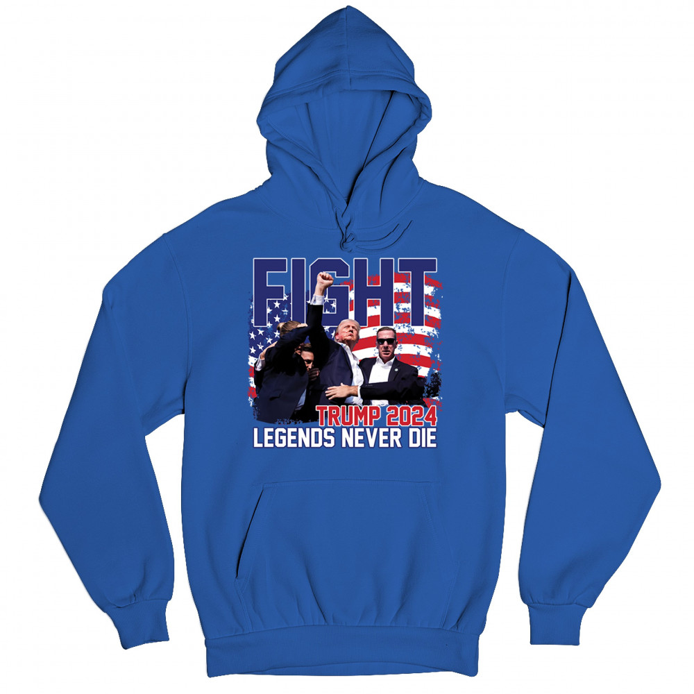 TRUMP 2024 LEGENDS NEVER DIE sweatshirt maga america first president hoodie royal blue