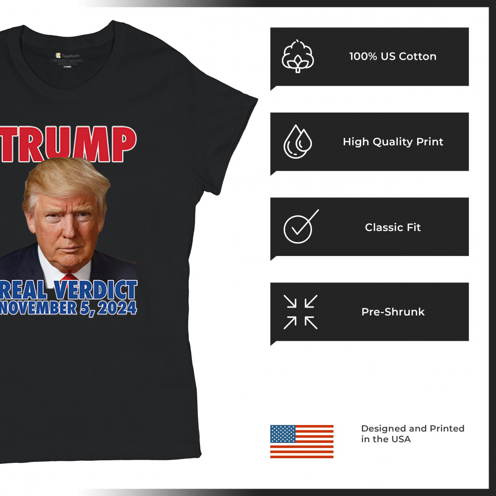 Show your support for Donald Trump with our bold "Real Verdict November 5, 2024" design. Perfect for Trump supporters, MAGA movement enthusiasts, and those who mock Biden with the "Let's Go Brandon" slogan.
