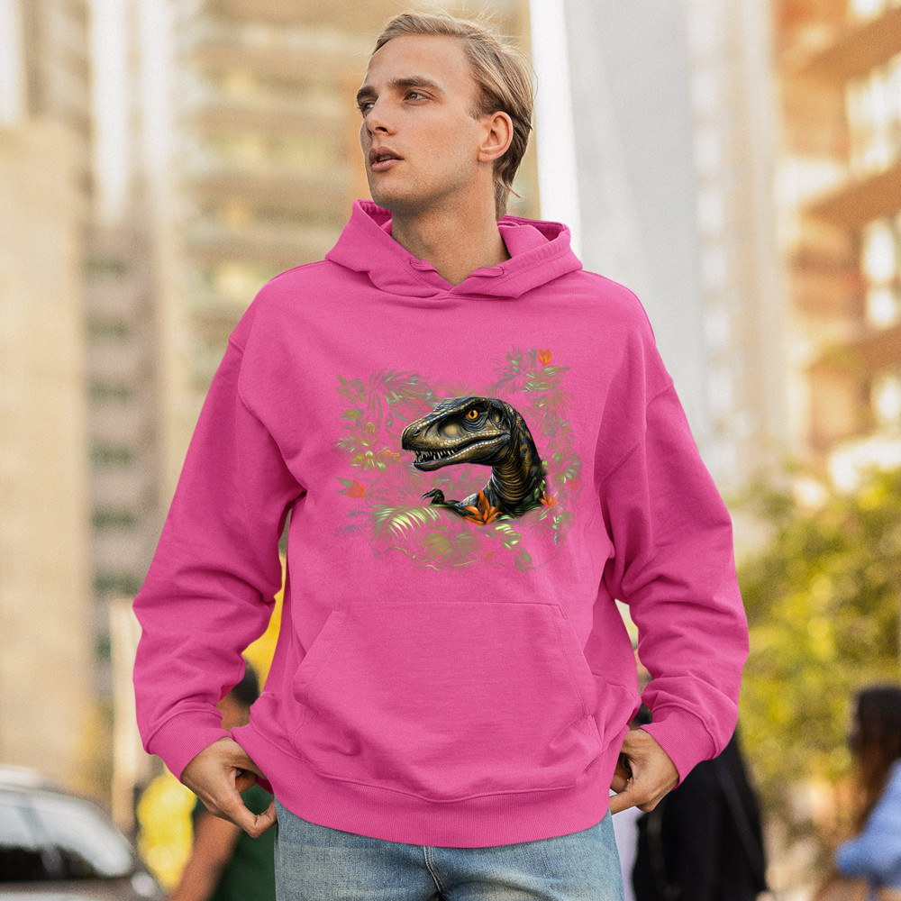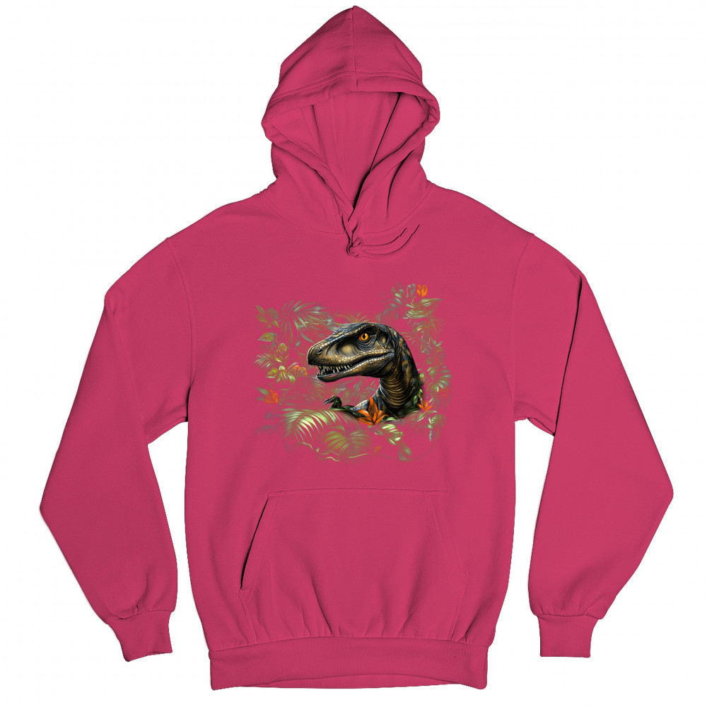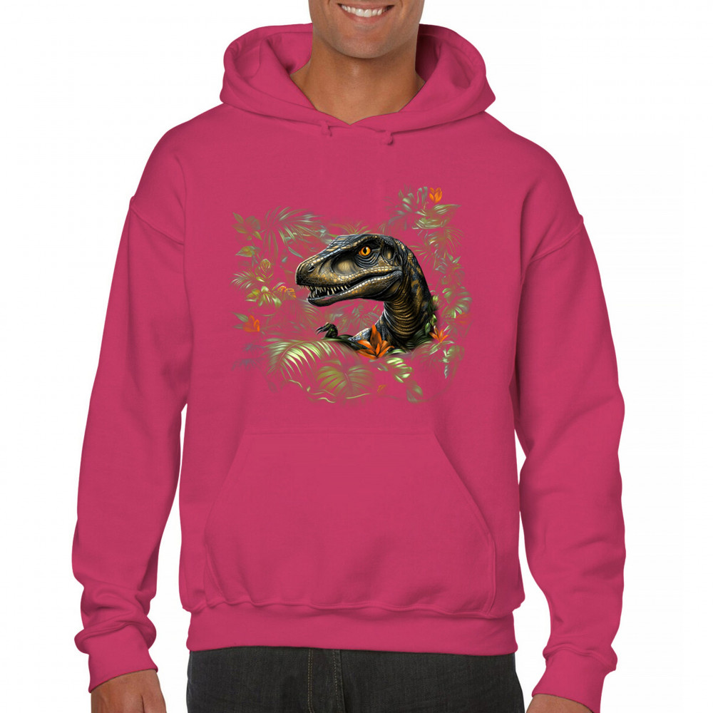 Step into the wild with this striking jungle raptor design. A highly detailed velociraptor peeks from vivid tropical foliage and flowers, perfect for dinosaur lovers, fossil fans, and ancient creature enthusiasts. Whether for Jurassic adventures, museum trips, or themed events, this design unleashes untamed prehistoric energy.