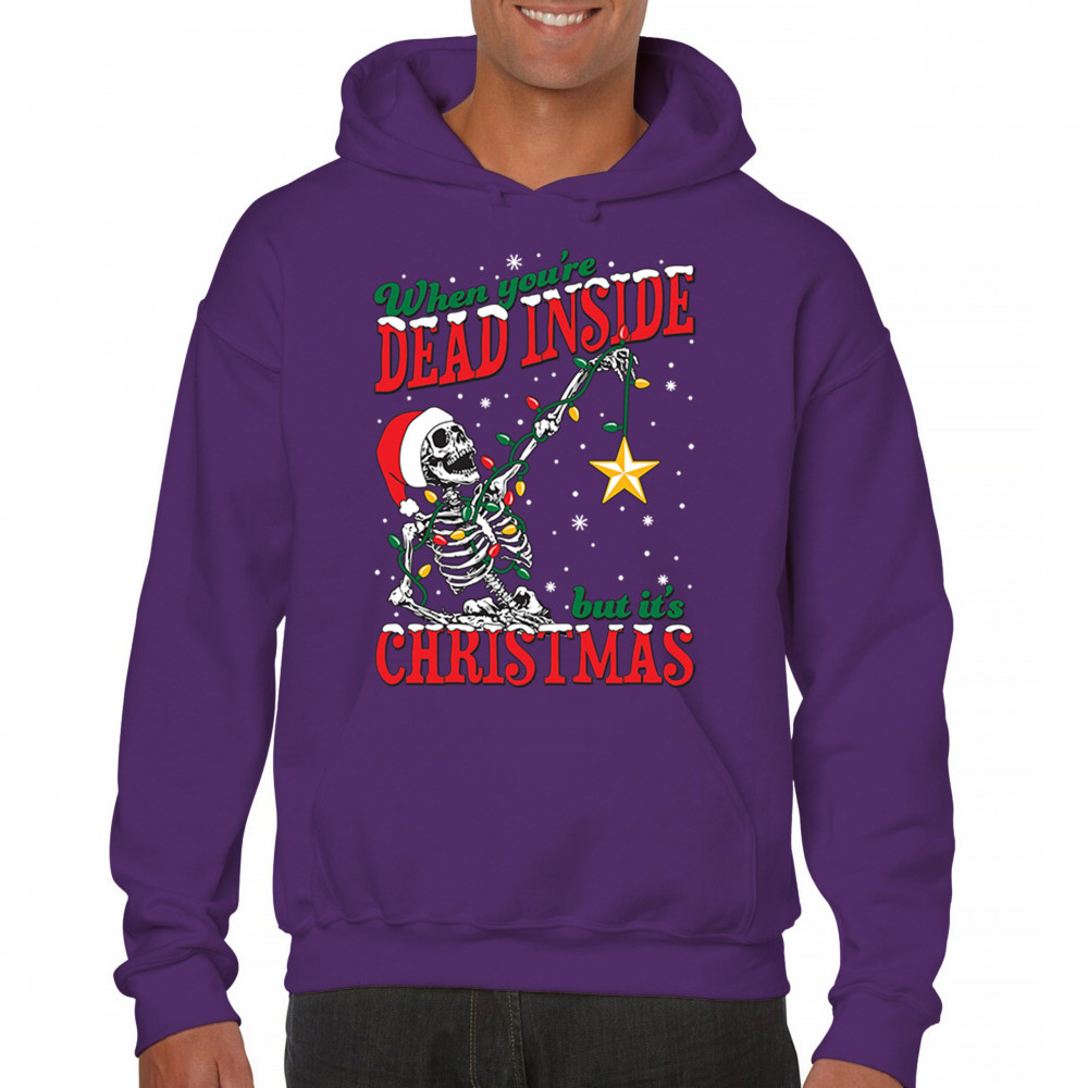 Celebrate humor and holiday spirit with the "When You're Dead Inside But It's Christmas" skeleton design. Perfect for parties and unique gifts.