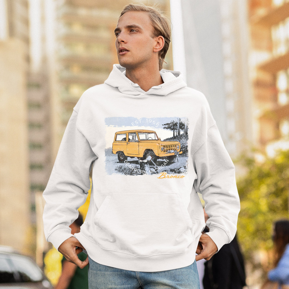 Celebrate the iconic Ford Bronco with this classic car apparel that embodies the retro Ford design. Featuring the Bronco Since 1966, this artwork is perfect for Ford Bronco enthusiasts, rugged SUV lovers, and off-road adventurers. Whether you're a Ford truck fan, a collector of classic car collectibles, or looking for the ultimate Bronco gift, this timeless design reflects the heart of vintage off-road vehicles and the outdoor explorer lifestyle.